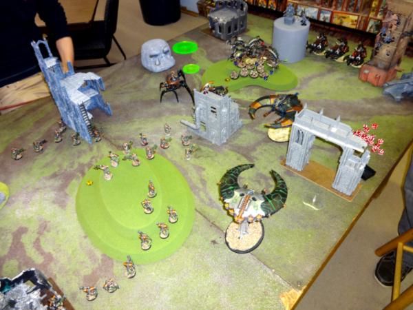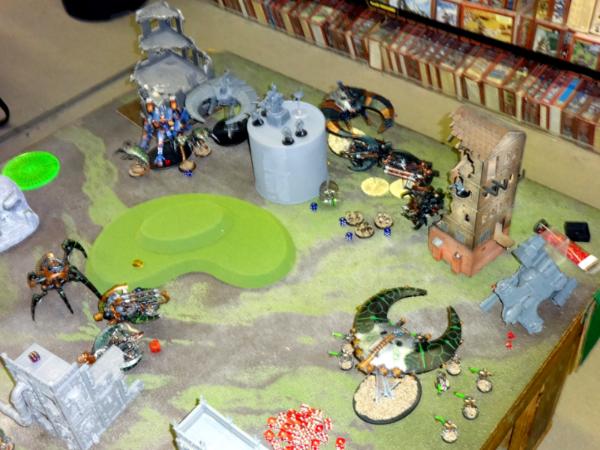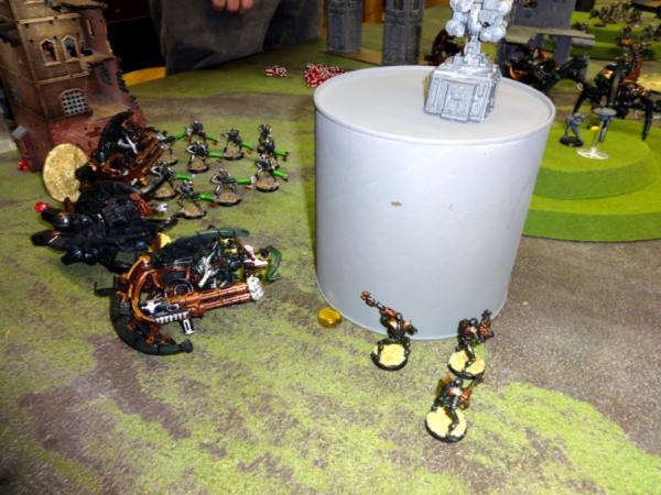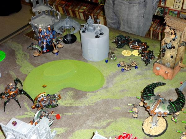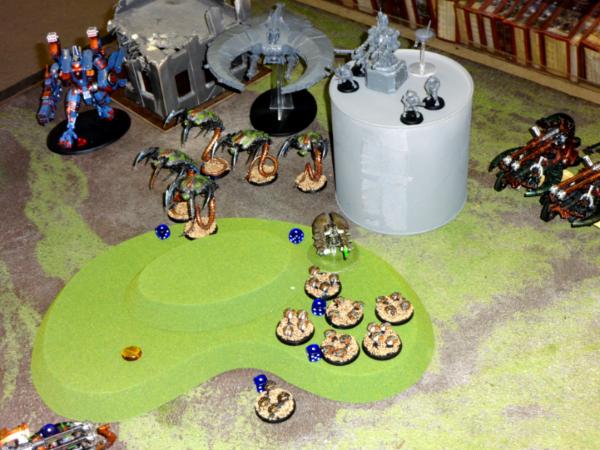 All hell breaks out as the Tau enact their vengeance on their invaders, pulse rifles, quad guns, markerlights, ion cannons and annihilation barges light up Potentus and his wraith retinue, killing several of the squad, however, they are still combat ready.