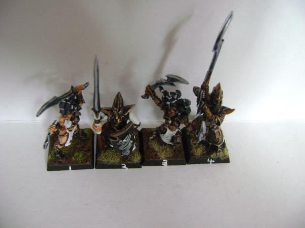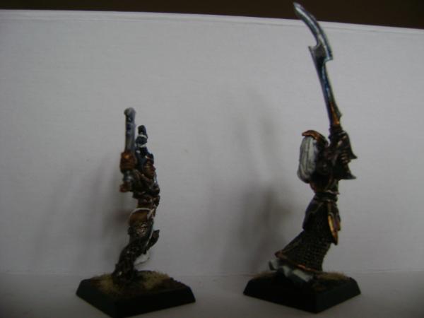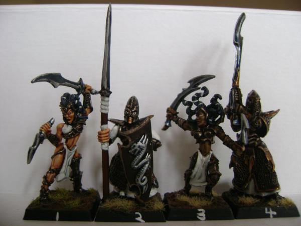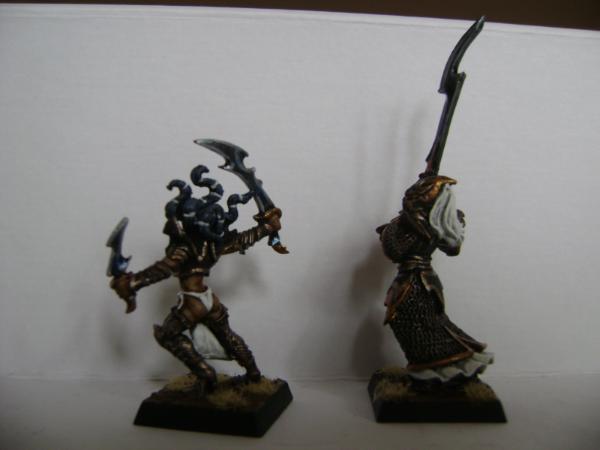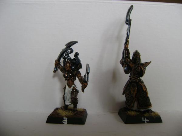 But that's my t'pence. Sorry for waffling a bit. Overall I, think you're way on the right track. The witch elf (No.1) is pretty much bang on as it is. If you aren't totally happy with the skin tone, experiment a bit yet til you are. This army is gonna look great though. Ticks all my boxes in terms of paint scheme; subtle, earthy colours, very limited palette, contrast without shock, no big bright pinks, purples, yellows. And very very well excecuted. You're tackling a lot that I'm not great with, skin, metals, cloth, leather, etc. Just WFB I suppose.