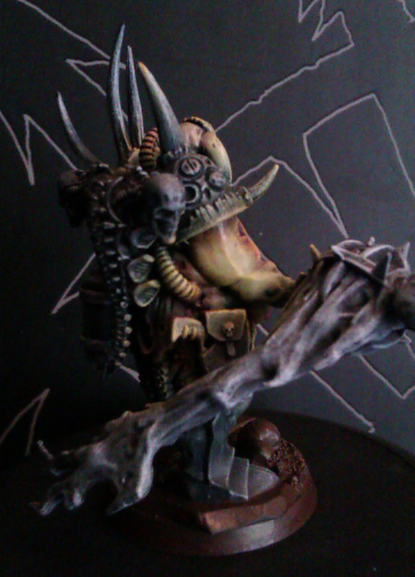 And the final Finished model! Easy last step, boned up all the spikes and skulls with 3 shades of brown and Agrax earthshade wash, finished the green mist, blackened up the Mace and the applied Arg coat for the slime and wet effects to the ozzing areas. Now to slay some loyalist scum!
