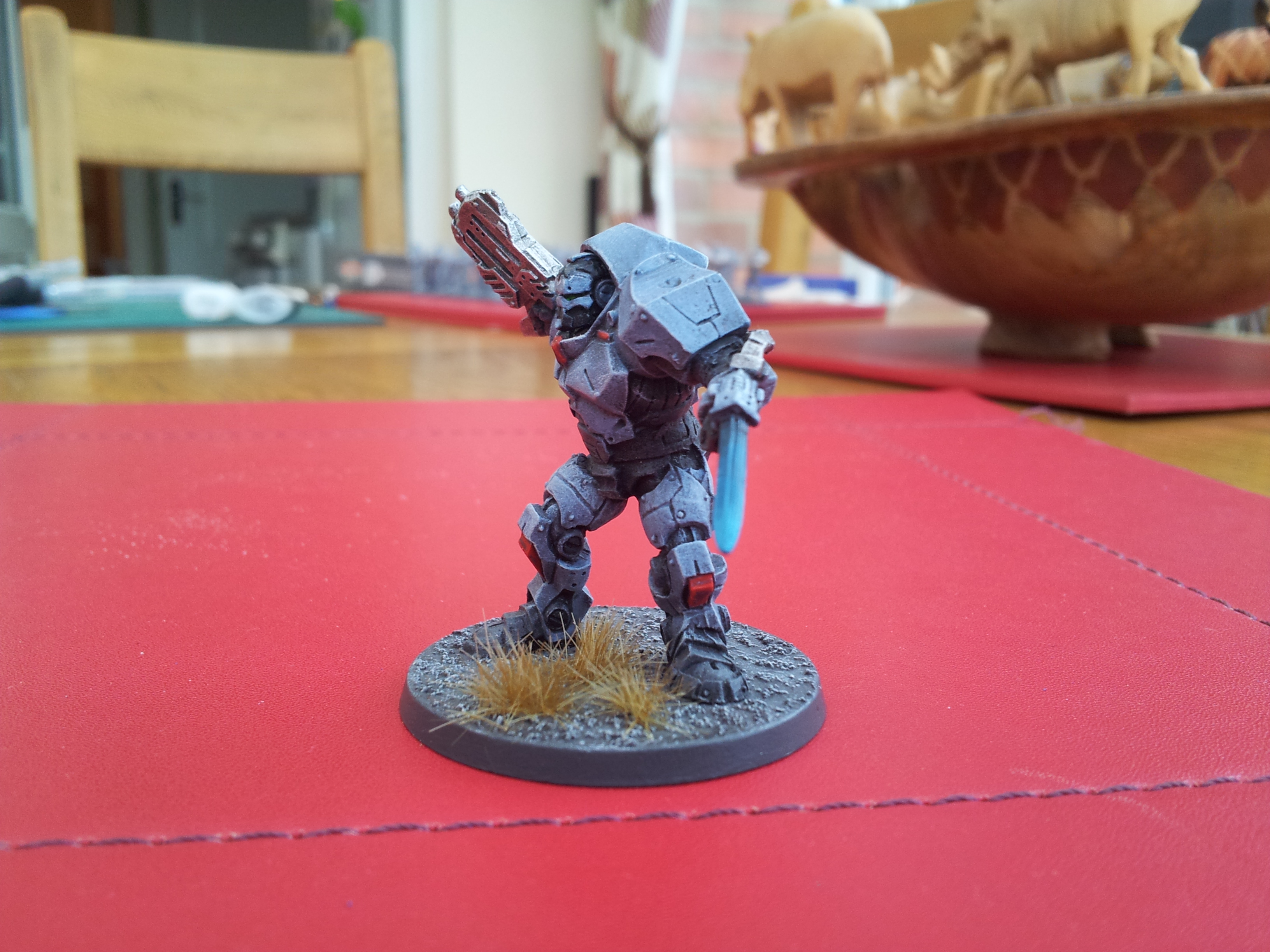 Base colours, wash, highlight by dry brushing so all new to me! Over all I'm quite pleased with the turn out and now on to the smaller enforcers!