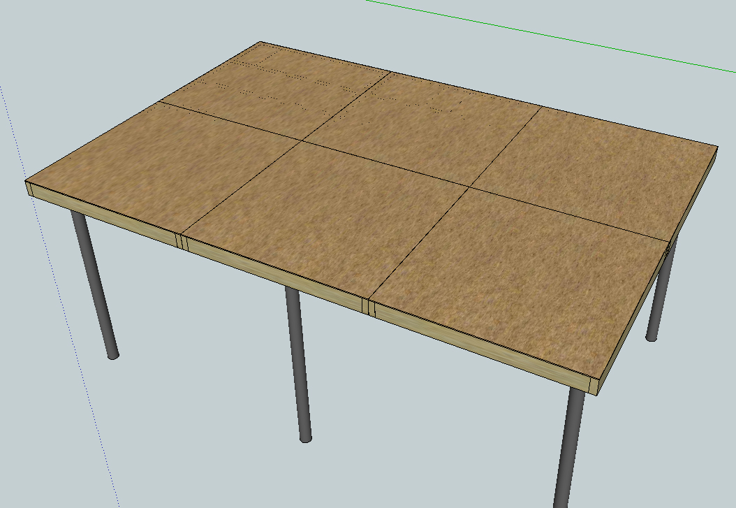My table top sits on top of a drafting table that was only say 36" x 60".. so I had to add supports in my outside leafs as the weight of the board will cause a gap where the boards marry together.