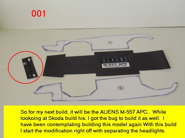 I have been tossing this one around for a while and after seeing Skoda, over at Zealot build his, I decided to throw my hat in the ring as well. The model can be found over at the ALIENS paper craft site. http://aliens.humlak.cz/ When you get to the main site, it will be on the right side. You will have to play with site a little but it is there. When you download the plans, it will be about 1/48th scale. Go to your printers property and change the orientation to landscape. The model will now be about 1/35th scale. It will be large enough for the details and the tabs will be easier to control at this size. This is the beginning and I have about 80 photos to edit and the build is not half done yet. The teaser is, I am surprised as to how it is coming out. I use almost all of the printed plans but there is an abundance of scratch built material to play around with. And lastly, thanks Rukr for the design, I will try to do justice to your creation.