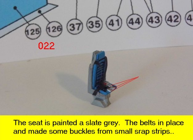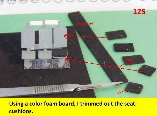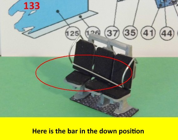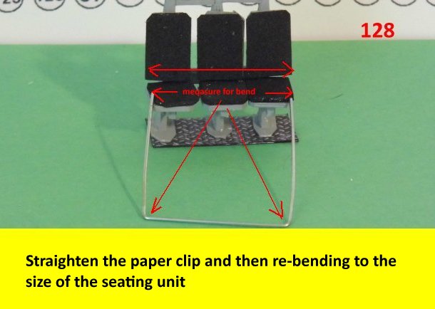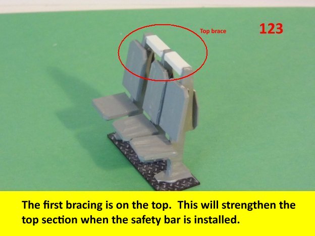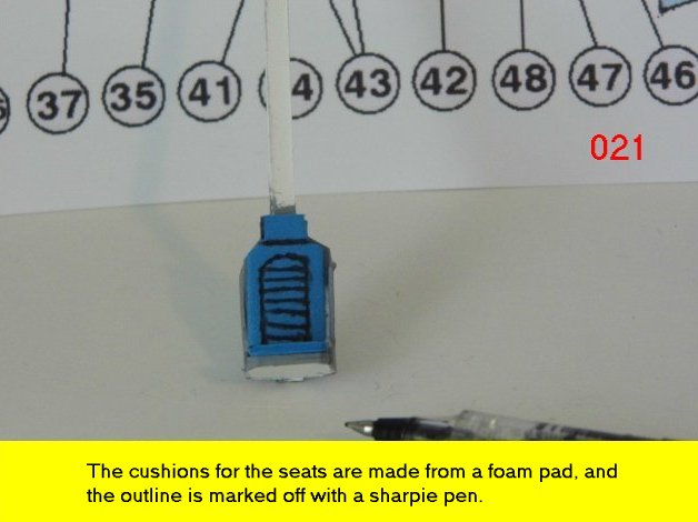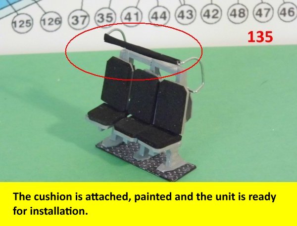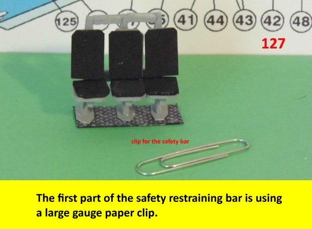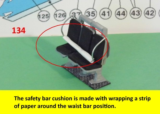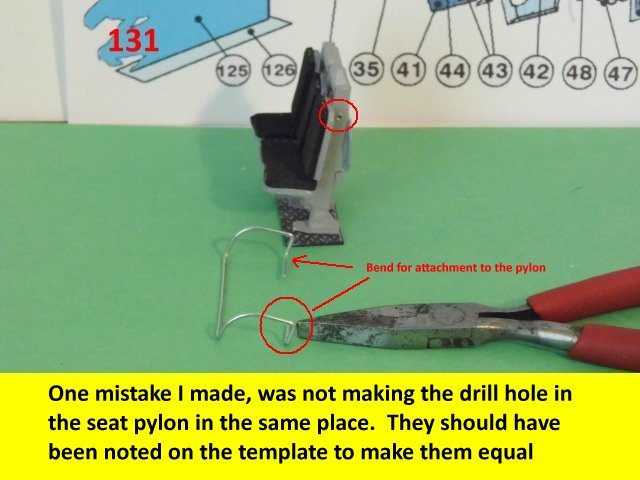Here are more photos of the seat building process. Not shown is the drilling of the hole on the pylon for the safety bar. When you drill the hole, make sure it is on a flat surface so that the part will not unravel when drilling. Go slow while drilling the hole. Enjoy and see you all next posting.