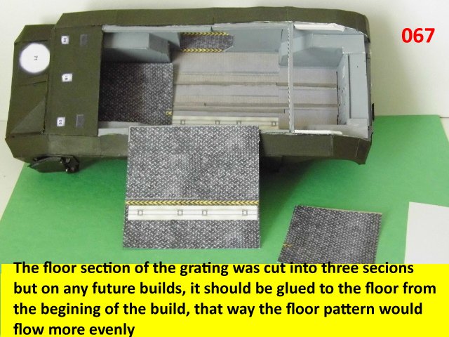 Started the insides so that I can begin on a whole bunch of new ideas for the interior. That floor plate was designed after I started on the build. That is why I broke it down into three sections. Next build, if I get around to it, the floor grating would have been one of the first steps in the process and it would have been glued in its complete form to the floor schematic.