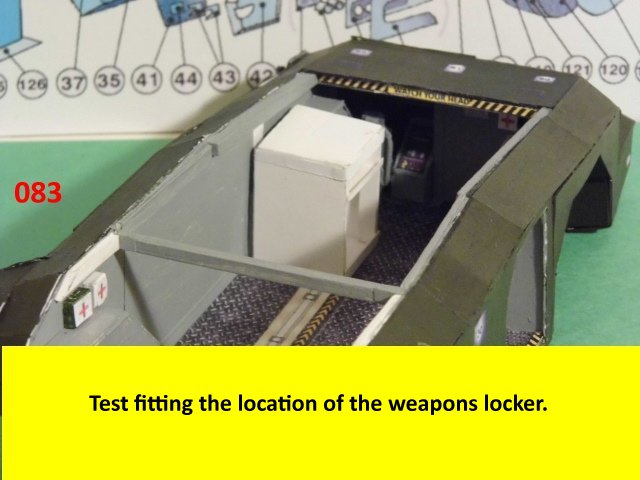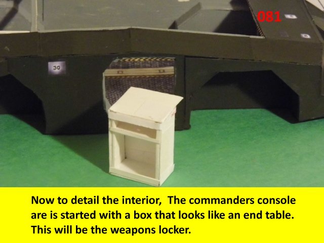 The APC is coming along nicely and the details are making it look better with every added detail. This is the beginning of the cabin detail. The first thing in the agenda is the weapons locker. It will take a couple of postings to detail the progress, but first I have to finish the editing.