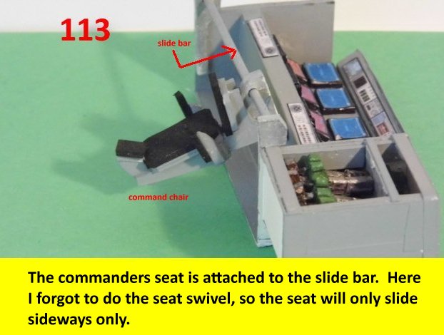 These set of photos jump around a little. The sliding rod is for the commanders seat, which will slide in front of the console. The seat was also suppose to swivel but I forgot and made it fixed looking forward, but it still slides.