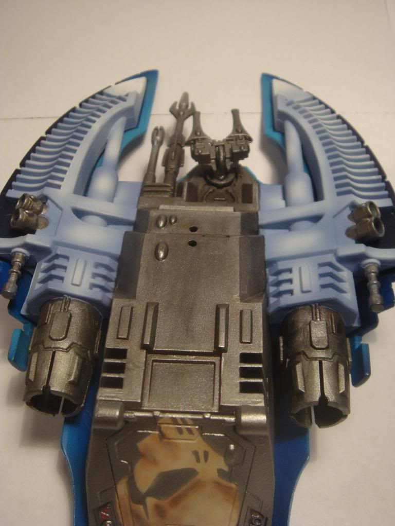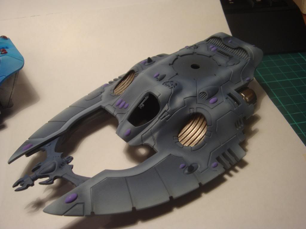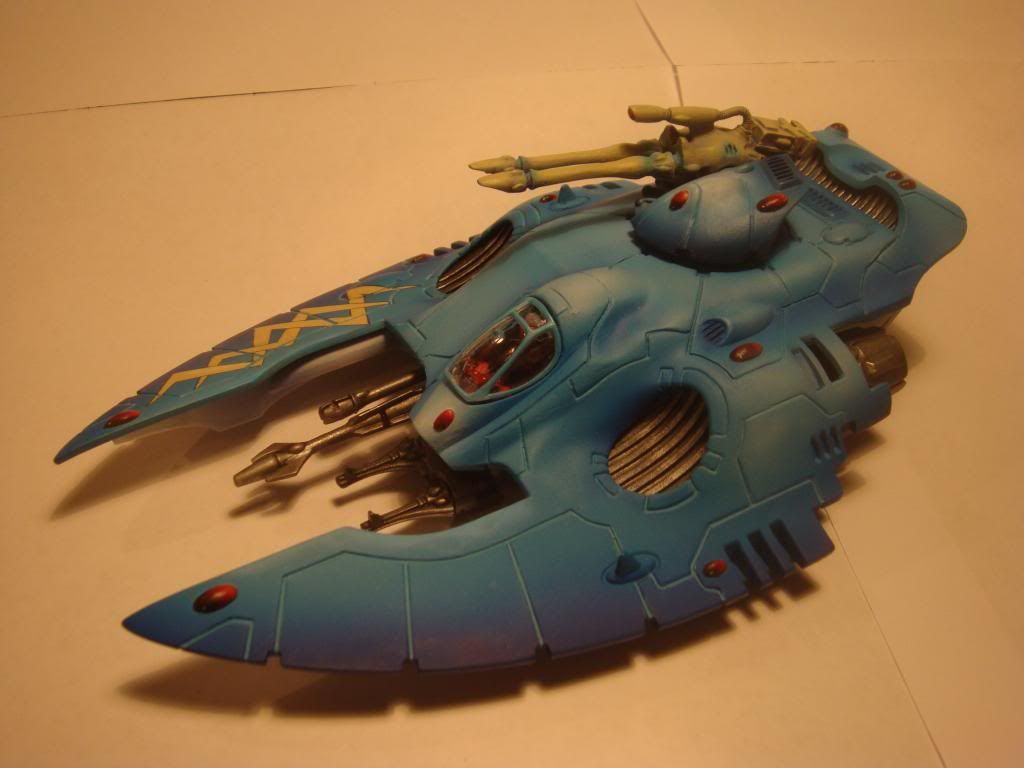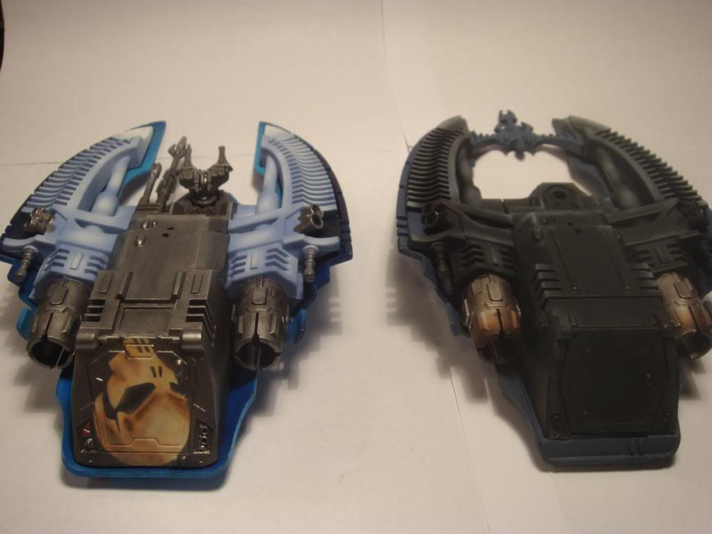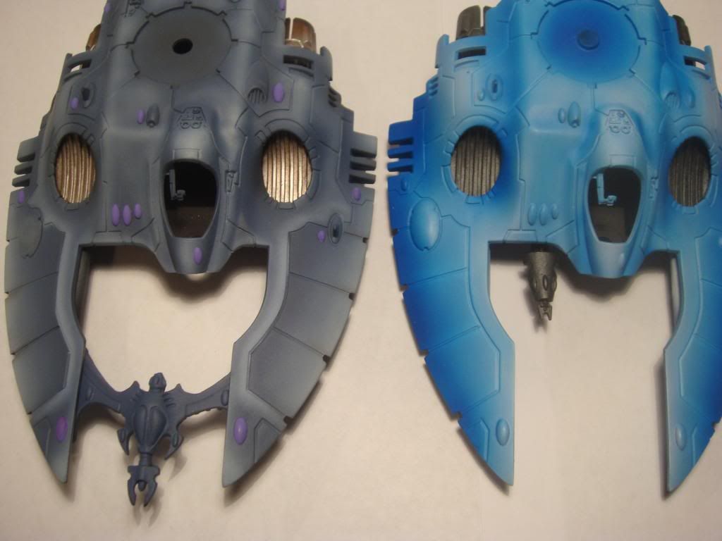 Both are awesome but I prefer the grey scheme. And although it looks cool, I think the slightly burnt engines look out of place on an Eldar vehicle.