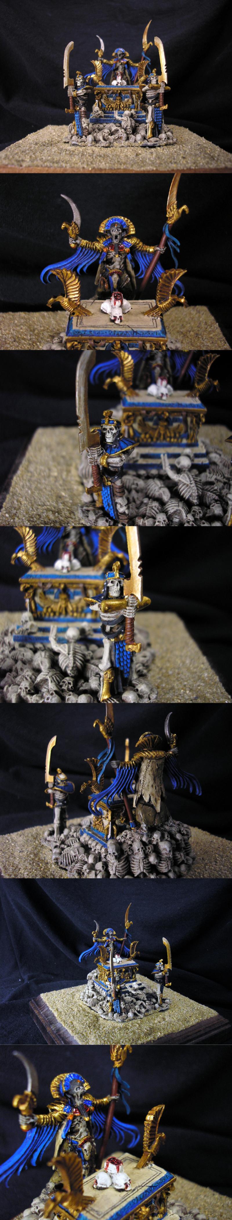 Thanks, I'll have to add the highlight when I find time. Painting the sand is a good idea too. I figured, "hey, sand, in a desert themed army, shouldn't have to paint that right?" Though I have seen some tutorials around on painting sand to look like sand  It'll just mean I have to tape up the wood around my base before I prime it. As for the size, I think I'll just eventually glue the casket to the base (so I can fill in those gaps) and for purposes of measuring, have both my opponent and myself measure to and from the casket, not the base.