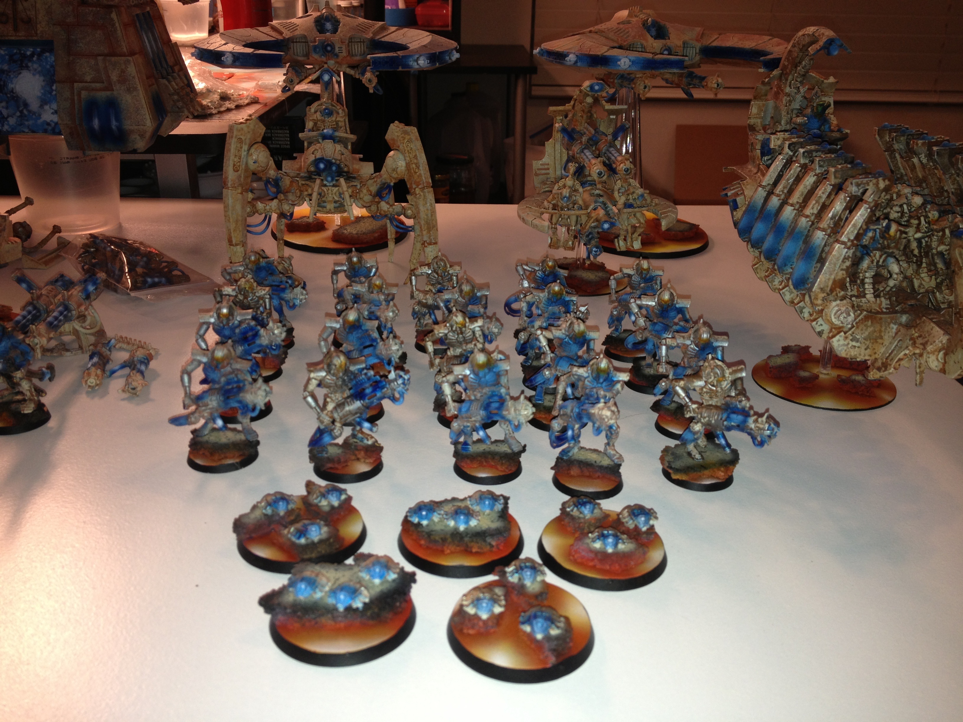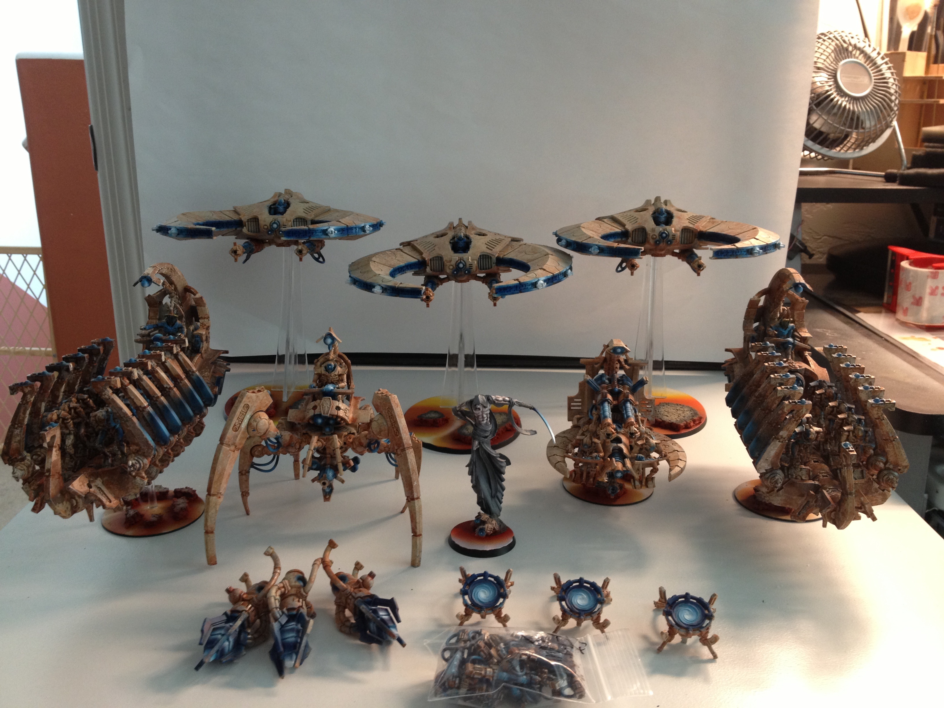 First time poster long time lurker. after being convinced by my buddy to start posting my work here it is. I have more just need to upload them. I finished a nightbringer,a stalker,3 scythes and a annihilation barge for the client and waiting for his monolith,command barge,20 more warriors,15 more immortals and another scythe.