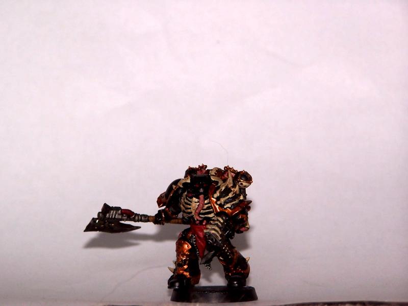 Ive finished another cultist and one of my Chosen, I also picked up a group of 20 unpainted ork boyz for half the price of 10 so that was nice. However the person seems to have lost or ran out of ork heads when putting them together and put an ork skull bit on one for a head. Thinking of using some liquid greenstuff to build up flesh around it and make it into a proper head.