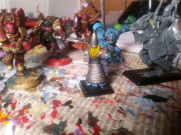 Looks fine to me; the only thing I'd suggest doing differently in any major way is the blonde hair - avoid using yellow as a base; instead use a yellow brown (something like VGC Heavy brown / Khemri Brown) and highlight up with a little yellow added to that at first then go toward a bleached bone / sand colour. Actual yellow-yellow (if you follow me) looks wrong, even for 'yellow blonde' hair.
