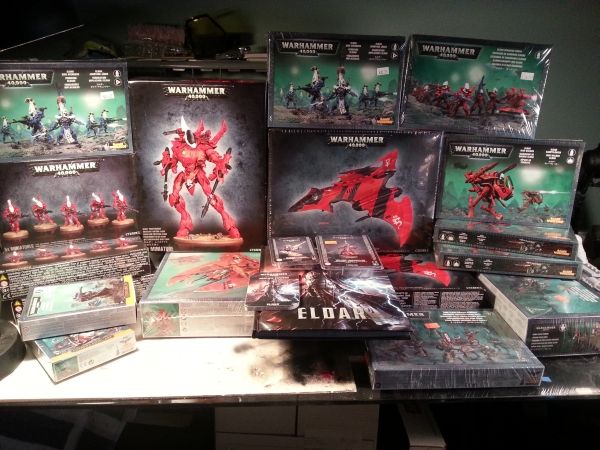2 Wraith Knights, 10 Wraith Guard, 10 Guardians, 2 Crimson Hunters, 10 Dire Avengers.