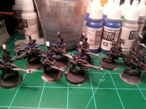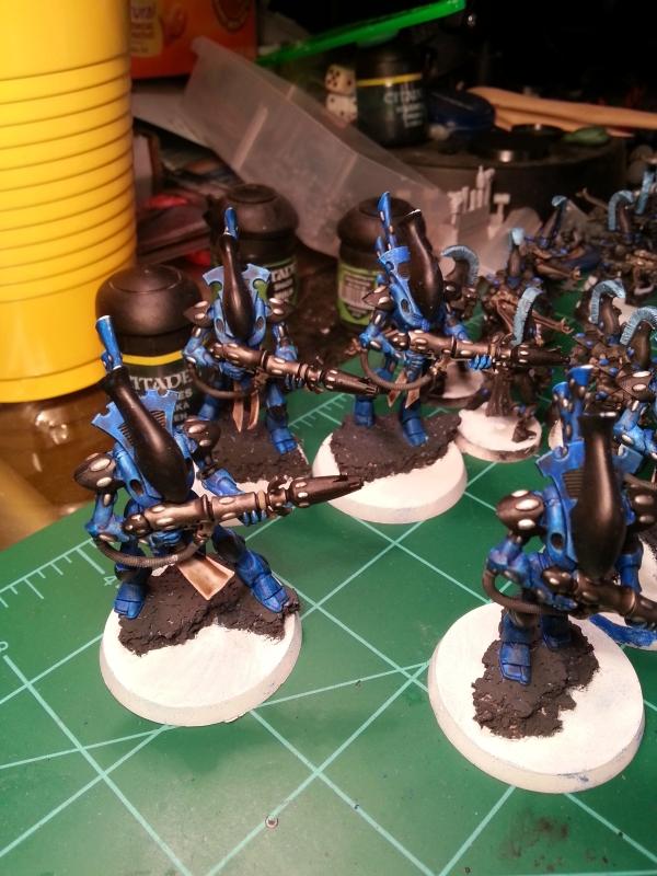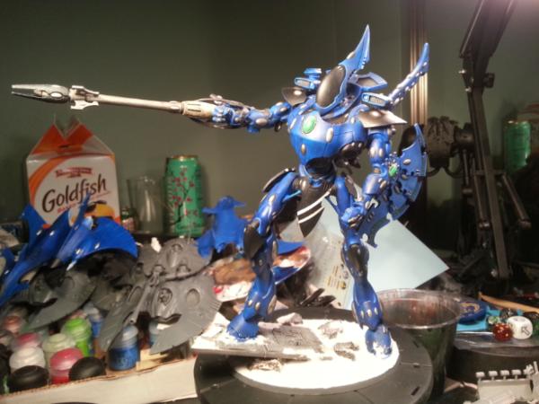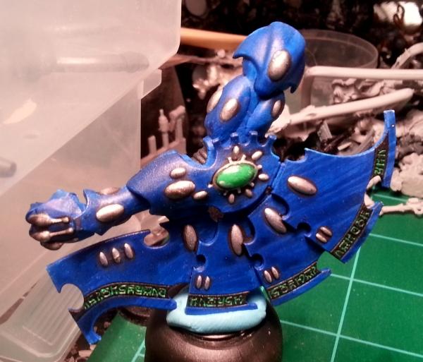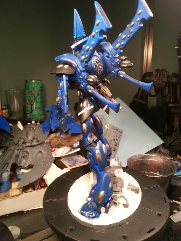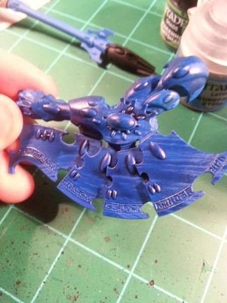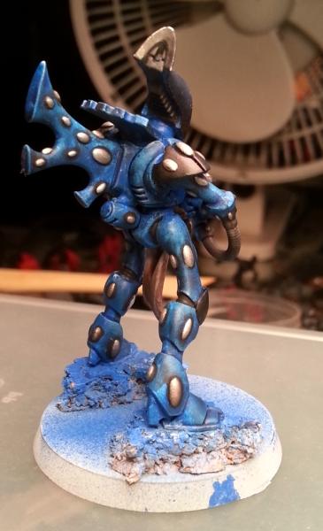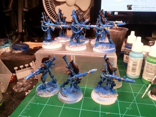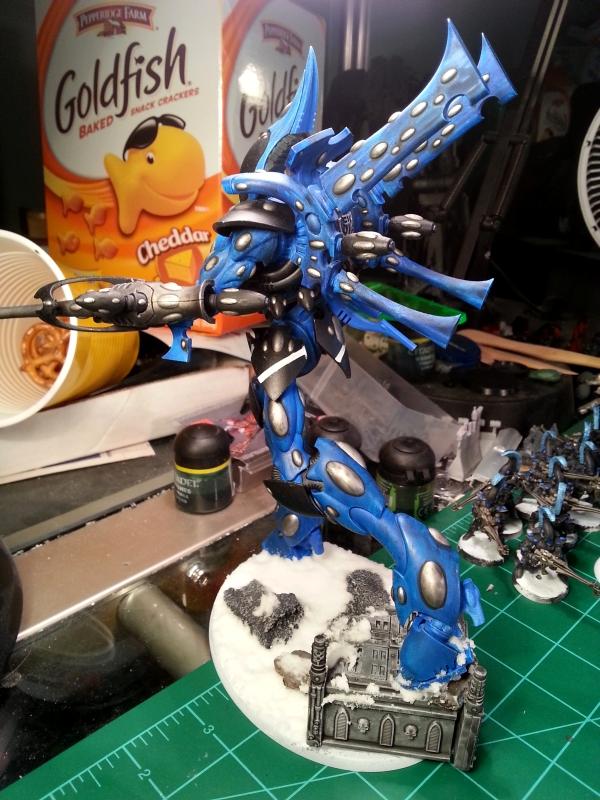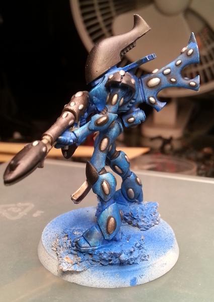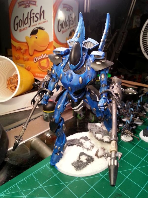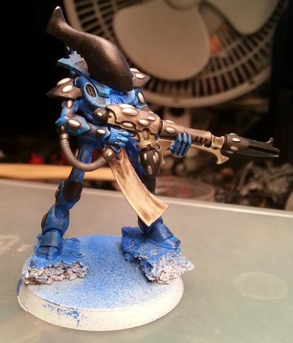 Very nice start, but I think there needs to be a little more variation than just all blue. No criticism intended as your paint job is beautiful. I nearly believe it needs some color to bring it out. Then again m not eldar, so maybe they believe in the subtle beauty  .