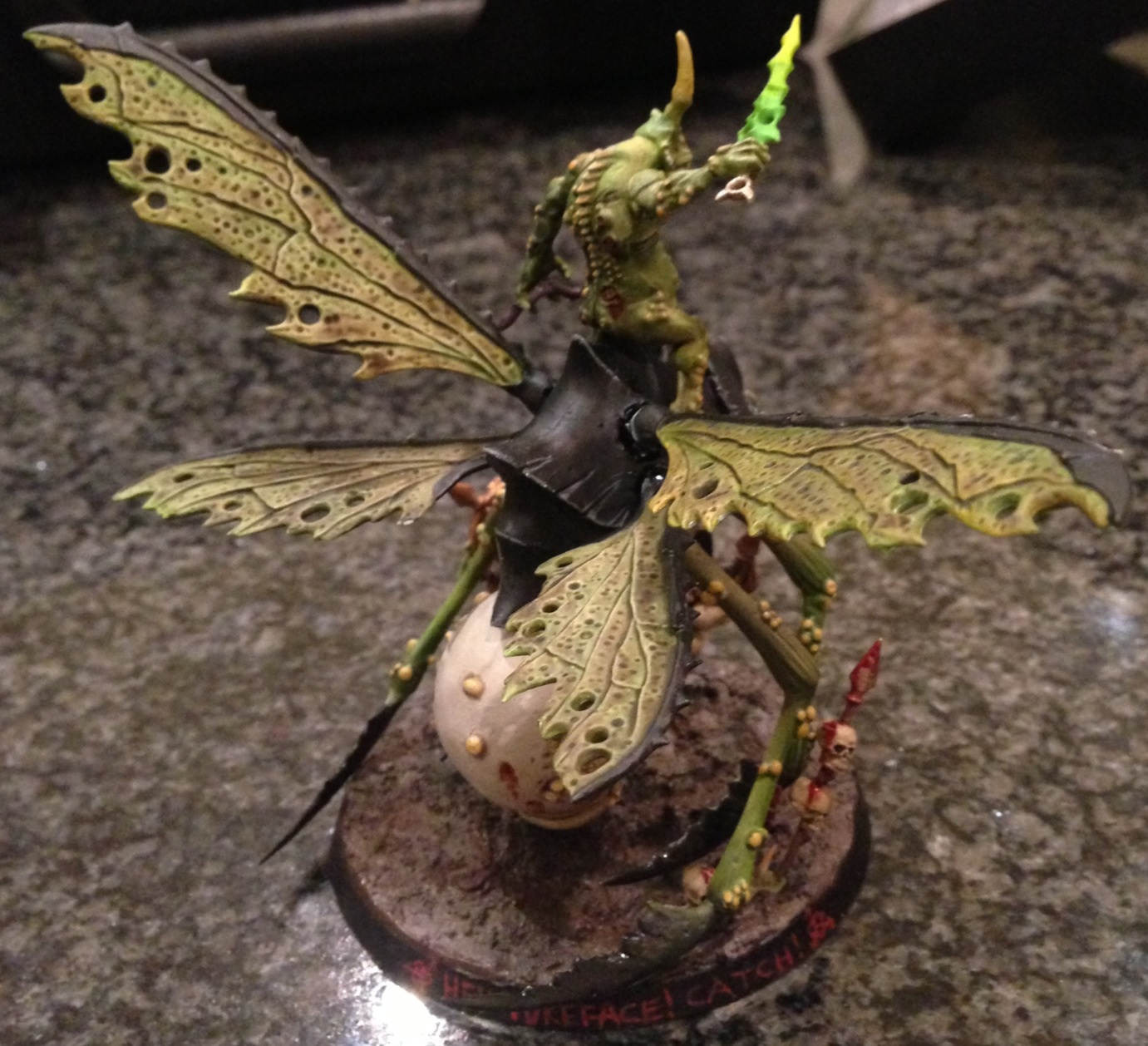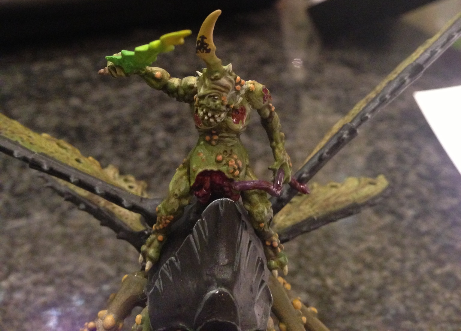 I know little of airbrush methods too. However I think that it looks good and brings up the grossness of Nurgle well.