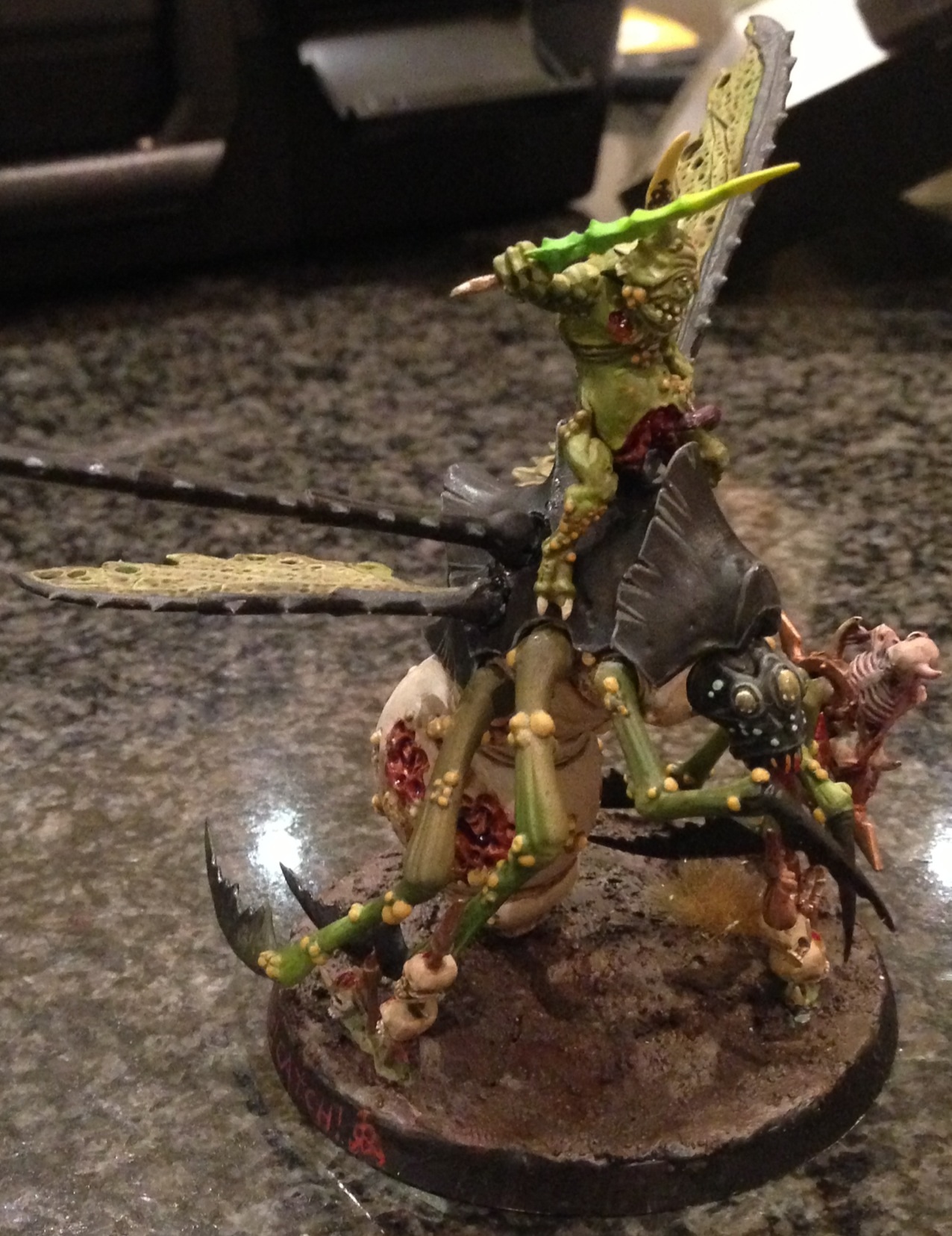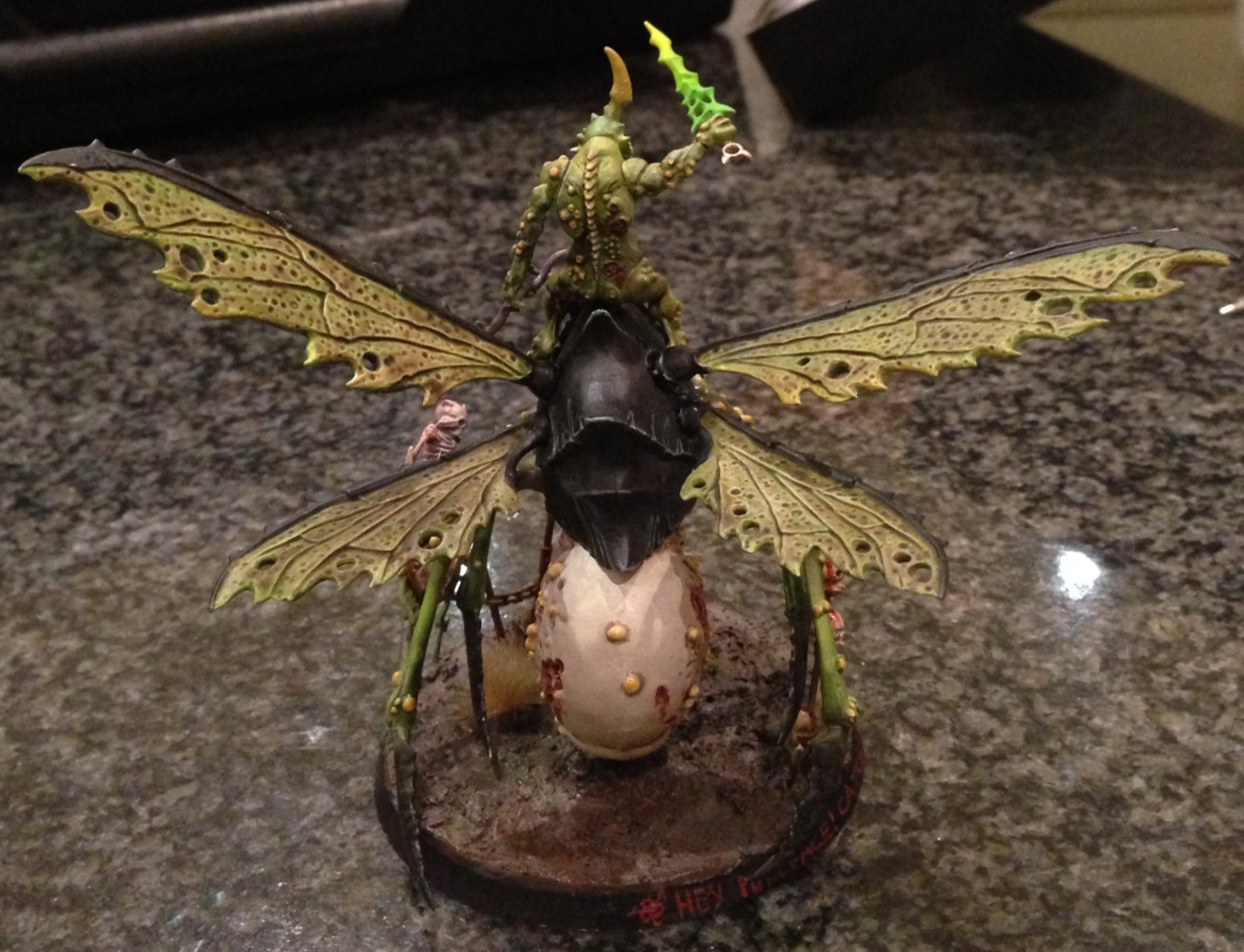[img]Hi all, so I painted up this guy over the past few days, and I'd like some feedback since my airbrushing skills defiantly need some honing. Ignore the base (and writing) since that's temporary. From the back I managed to get the Plaguebearer all zenithal but not as pleased with the front. Anyway, here it is: