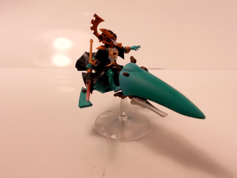 I still have a few things to touch up in the spots where my hand got wonky and I might pick up some green and blue (the right teal if I'm lucky) oil paints so I can get the lines on the hull to stand out. I also might get some light grey stuff too that will break up the white a bit. At the moment it looks a bit flat. Next up I will be posting some recently completed Dire Avengers.