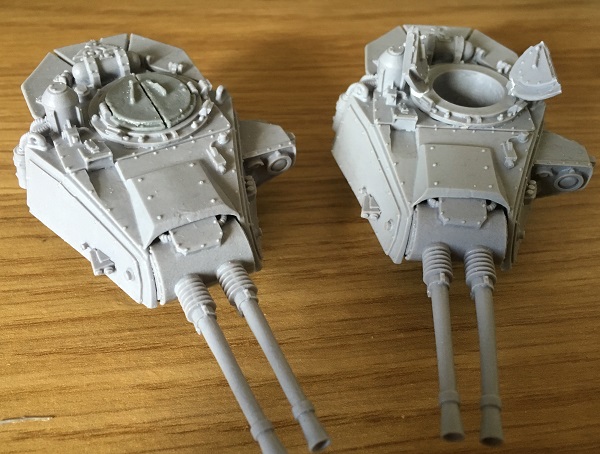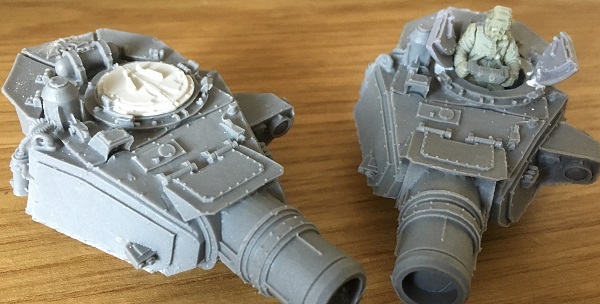 So the build process is slowing down in the lead up to our little mans first birthday and christmas but I have taken some time to tidy up my resin turrets and begin on conversions for commanders. I seem to have most turret types covered and will only be using plastic turrets for Battle cannons and Eradicators, I aim to have the ability to swap various turrets on to a pool of 6-9 Russ chassis - I have 7 already.