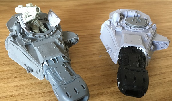 as you can see from the first picture whilst I like the FW turret body I also arent a fan of the Plasma cannon in it so a simple swap with a plastic one from the demolisher tank and you have a much beefier tank