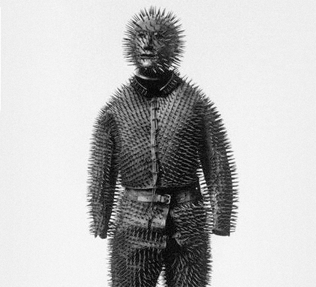 Anyone attempting to engage the wearer in a grapple must take a Toughness test every turn or die with no armour save allowed.