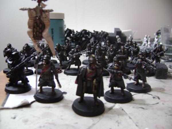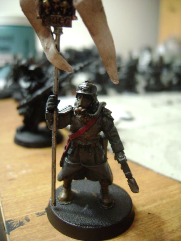 Alright gents, I've had most of a Command HQ squad done for a while now, save the damaged vox caster I just had replaced a few days ago, so in the meantime, enjoy bodyguards and a banner so epic it can't fit in one picture (My camera can't focus properly on it if I try and get it in one frame.)