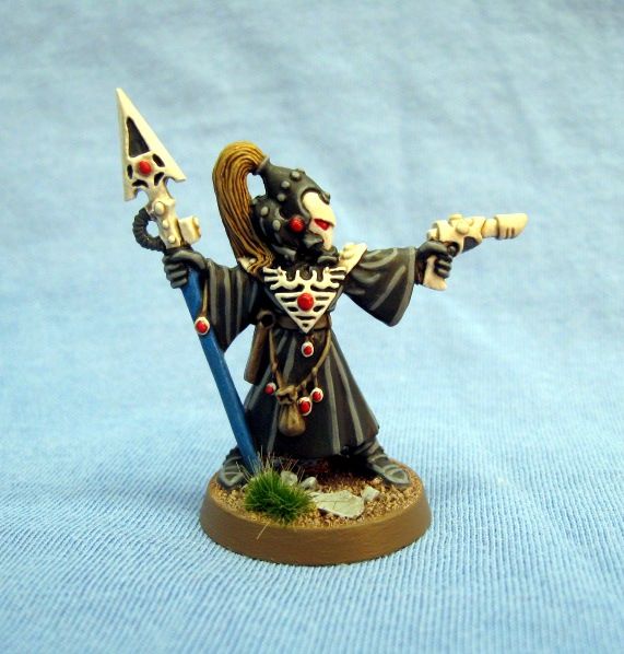 Black robes: I expected the dip to tone down the highlight and I wanted a bit off-black anyway, therefore no black wash prior dipping. I did consider it, though. Maybe I will add a mid-layer or two to smooth the highlights for next batch. I have two Farseers and 5 Warlocks waiting for undercoat (