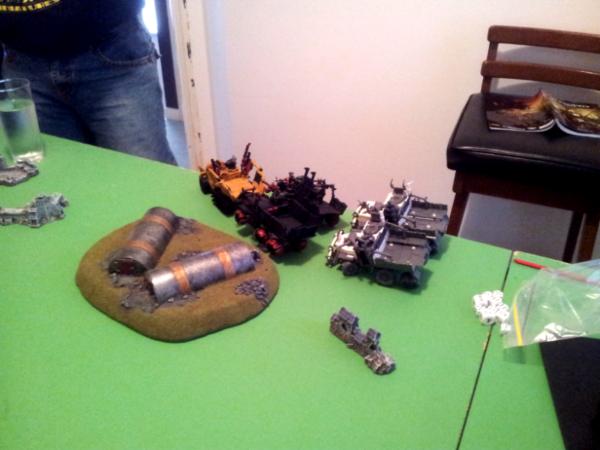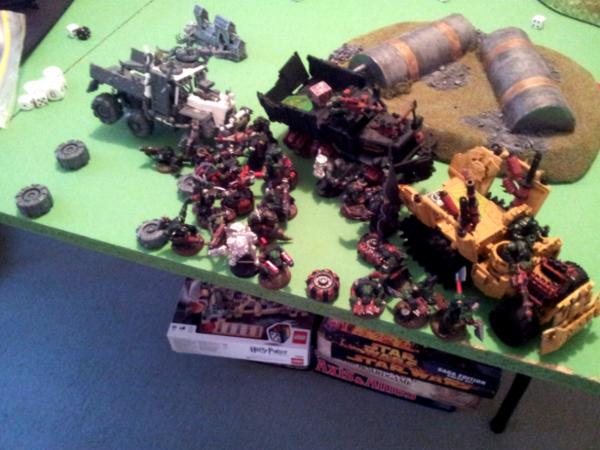 There wasn't much the orks could do, other then start to move around the dead/immobilised trukks, and try to fix the immobilised one with the Big Mek.