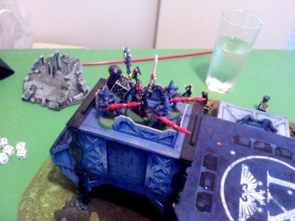 Finally, the Wave serpent fired its shield and scatter lasers into the last functioning trukk, blasting its tracks off and watching the boyz pile out of the wrecked trukk.