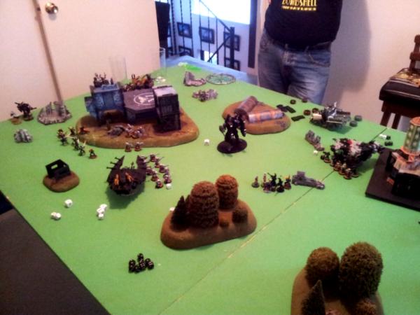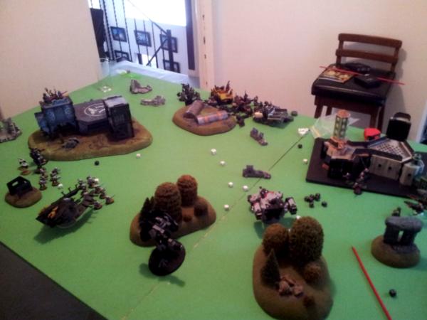 With the ork army in tatters, there was not much he could do other then bunker down on the two objectives, after which the game ended: