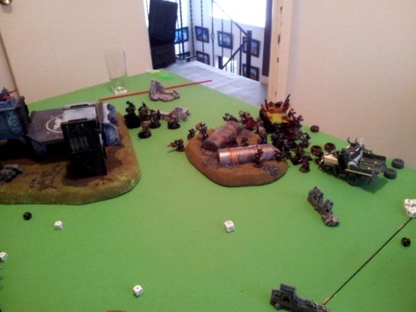 Meanwhile, Ghaz finally made it up onto the firebase, and the Big mek finally got the Trukk going, and moved forward with a flat out move.