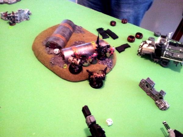 LOS from all are units, we focused in on the remianing Nobz, who promptly went to ground for 2+ cover. Despite an abundance of firepower thrown their way, the combination of 2+ cover, 4+ armour, 5++ invul and