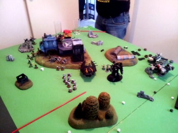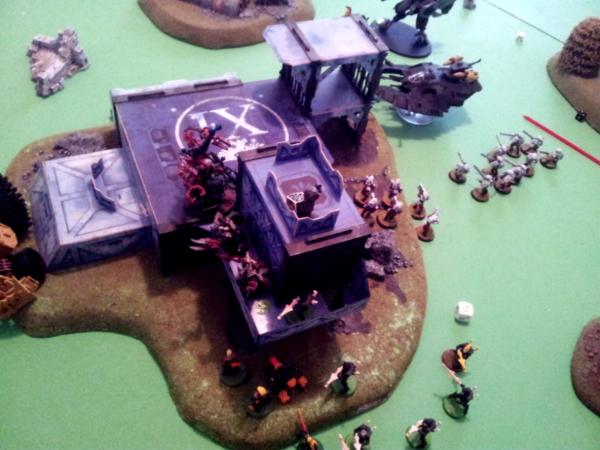 The Reaper managed to wreck the nobz trukk, whilst the rest of the army poured fire into Ghaz, just managing to bring him down.
