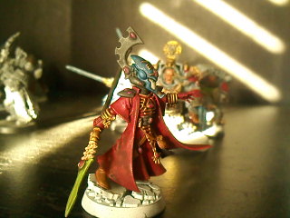 Hi All this is the first eldar model i have painted. Been painting for about 5 months. Looking to get some tips on how i can make it look better. Im going to run with this theme through my whole eldar army. Almost done with a Dire avenger will post pics soon. Going with red,grey and blue.
