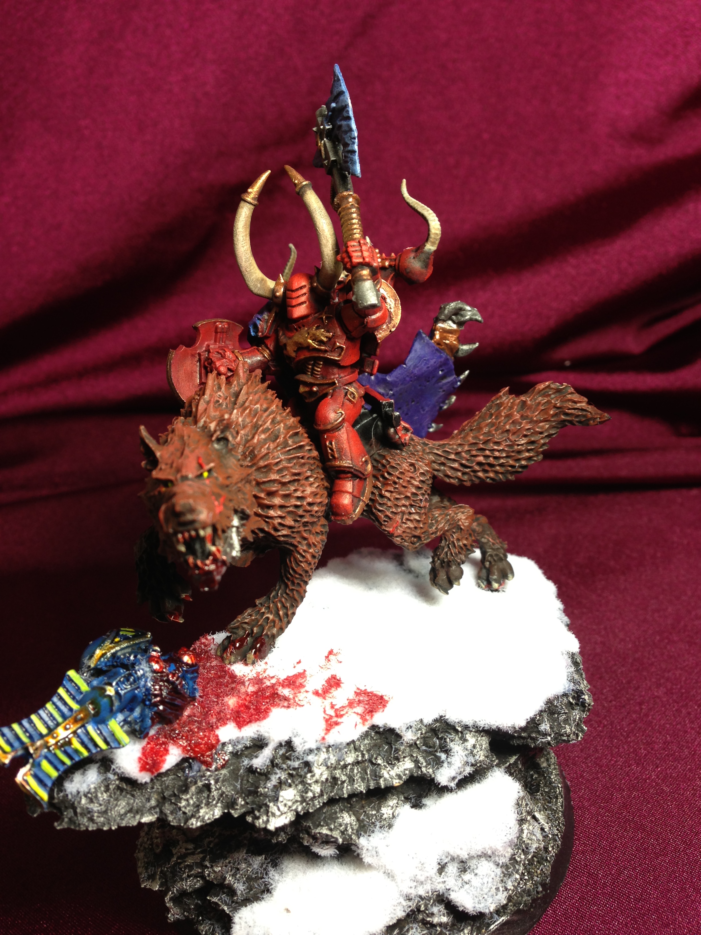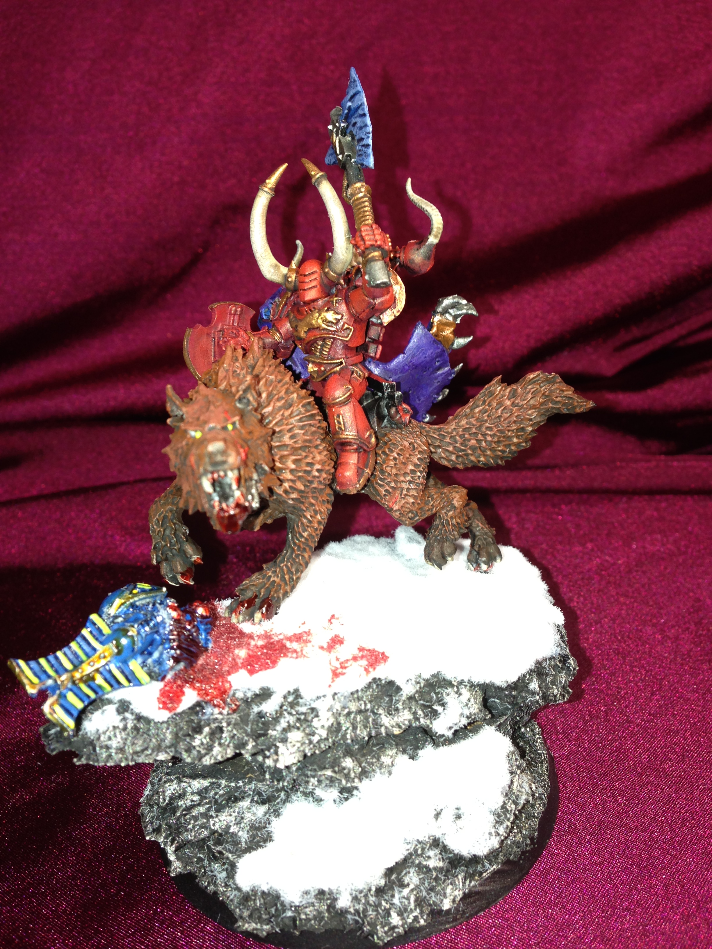 The God-Emperor forgave him impetuous son for his mistake that cost him his project and saw how he had no choice but to resort to Sorcery. If he didn't, he would have been annihilated. Now he had a new mission: Hunt and Destroy the fallen Space Wolves! They let go of their Loyalists colors and took a new name: The Crimson Wargs.
