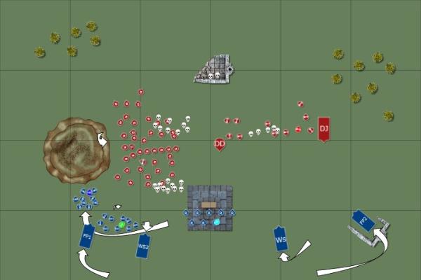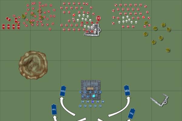 The battle field had been chosen in order to deny the orks cover as they advanced, only a hill stood between two large ruins with an easy killing field in between. The assembled host waited as the orks approached.