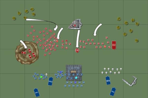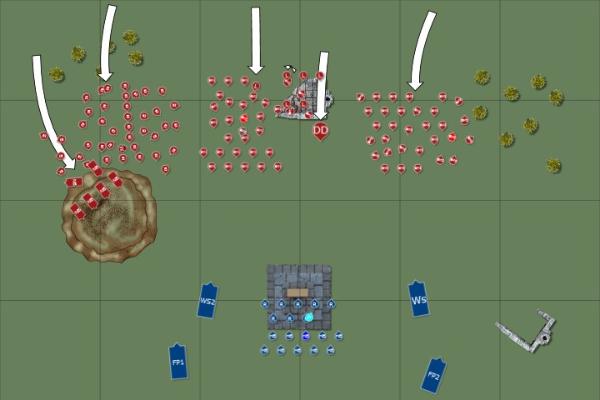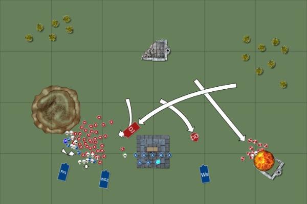 Sleg is also correct in that you normally focus on a single flank and destroy it and then focus down the other flank as they are forced to hoof across the other half of the board.