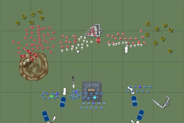 The orkish hordes swarmed forward towards the eldar’s lines. Tanks opened fire and rent through the green tide causing heavy casualties to the onrushing mobs. Together with the assembled outcasts Niena and her snipers took a heavy toll on the orkish heavy weapons assembled in the ruins causing those that remained to dive deep into their holes.