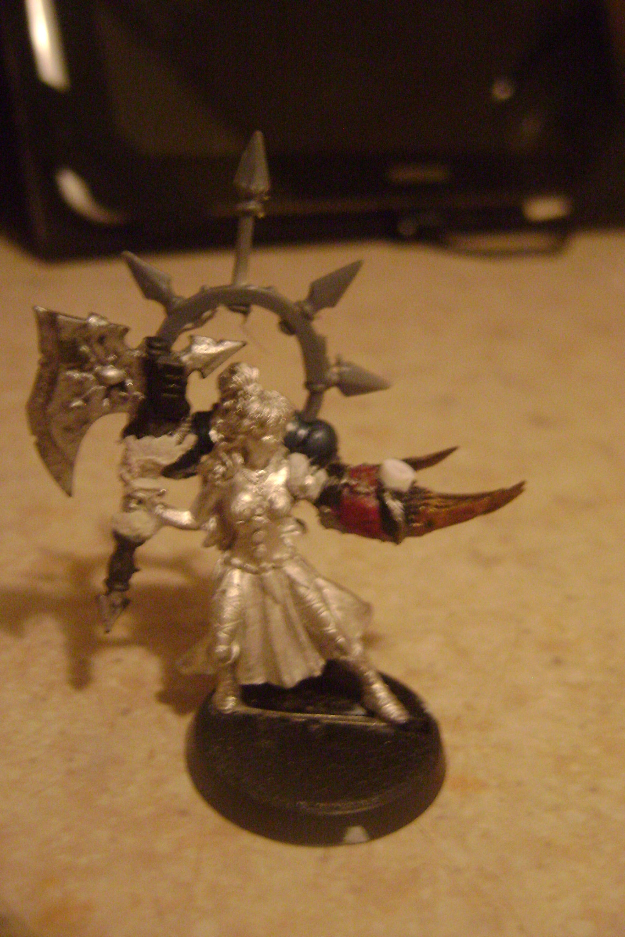 I just bought "the Girl" From bombshell-miniatures and I knew I wanted to try to make a count as HQ for Chaos SM and after looking through my bitz This is what i ended up with!