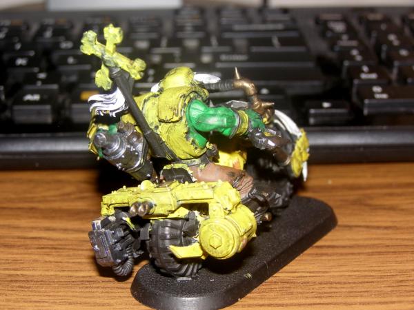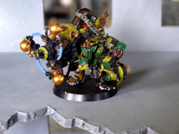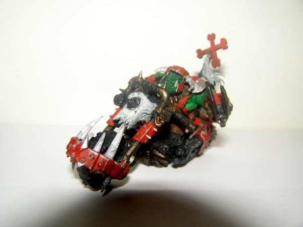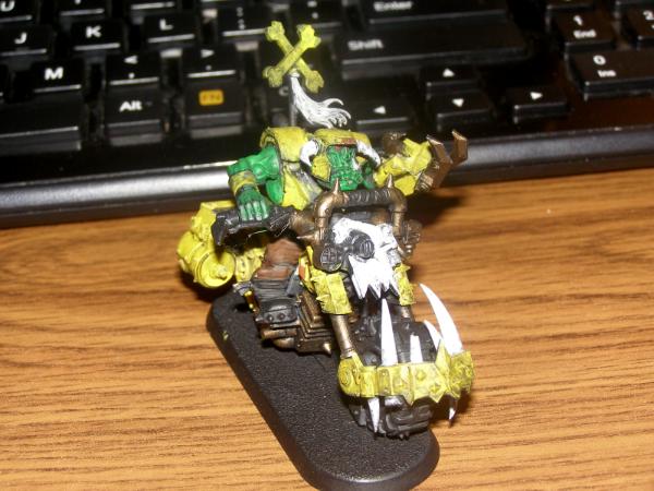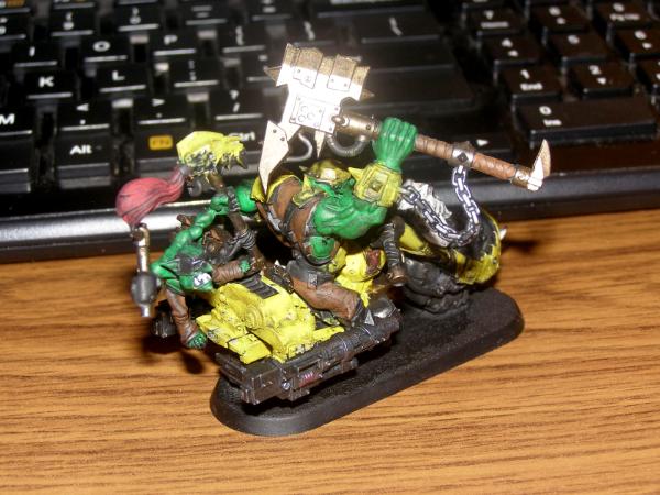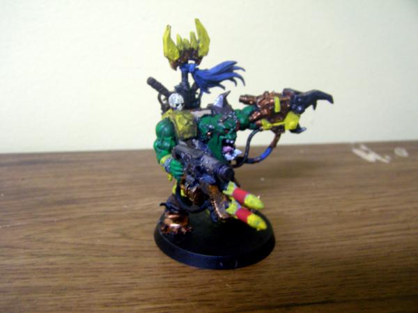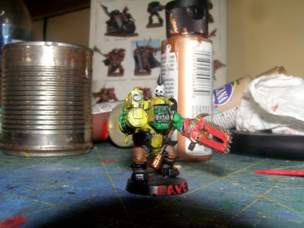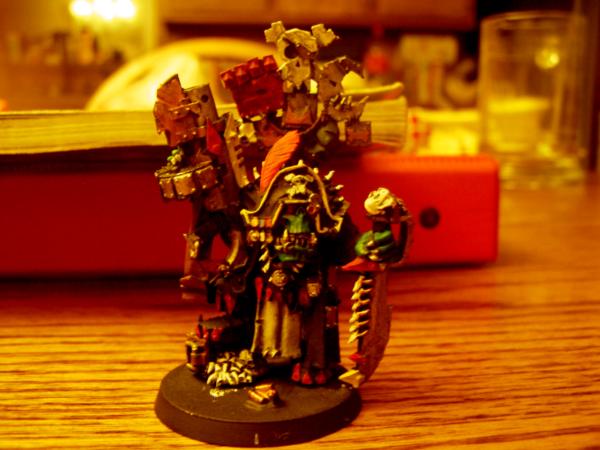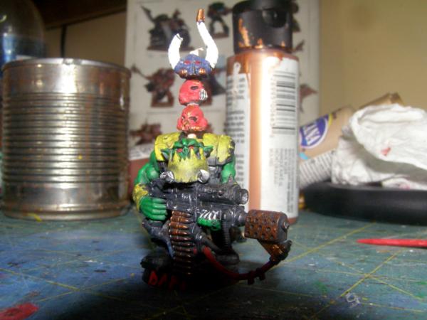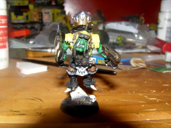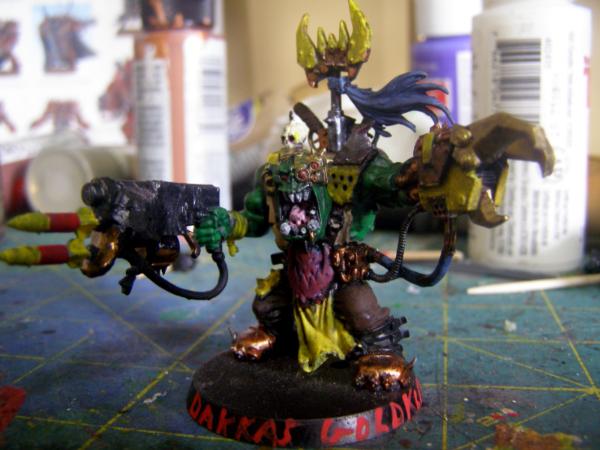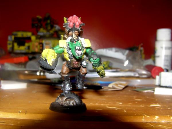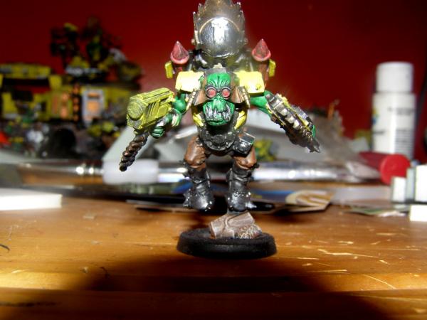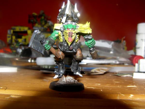 I re-painted him into a Bad Moonz Warboss. Sliced off his hand and gave him a Kombi weapon.