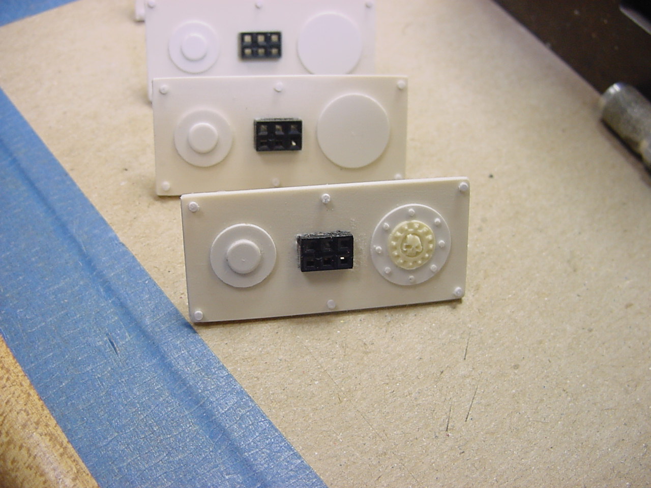 The female end of these connectors was epoxied into a plastic plate which will set over the old holes.