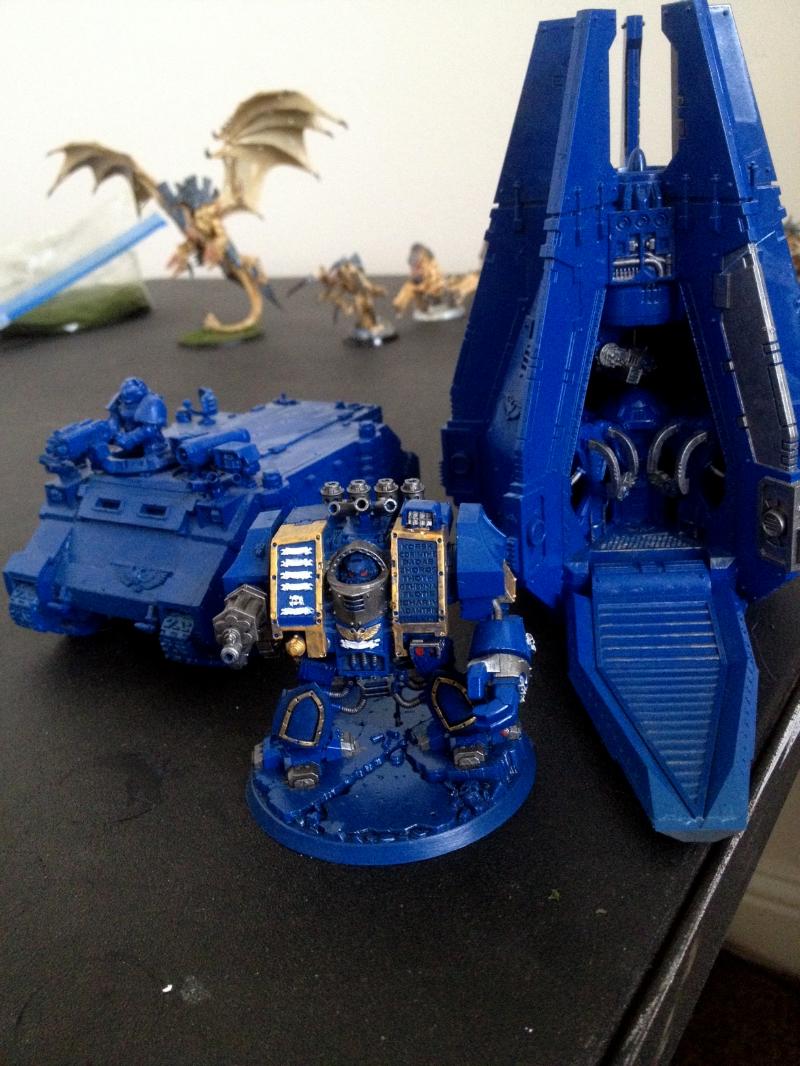 All his arms included, only the assault cannon arm is finished, the others are just blue.)