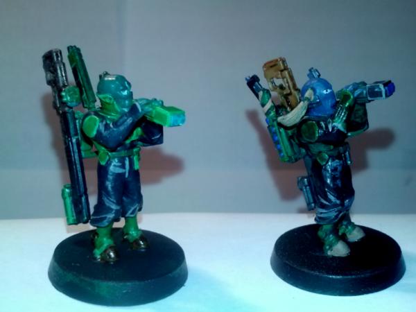 So I have started the first phases of my tau army, I have my first mini done to figure out the color scheme.