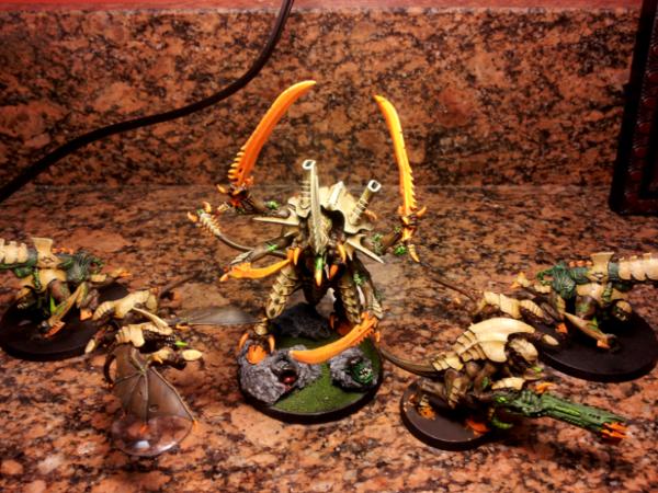 This is literally the first army I have ever painted ( or anything I have ever painted) and each model I correct mistakes I made with painting on the last one.(but messing up on gants and models I have many of... is different) My concern with the flyrant is the wings. It is a lot of space to cover and having it a solid color just isn't going to cut it for a model that big. I am not overly certain how to approach doing freehand highlights and I'm open to any technique or suggestions for them.