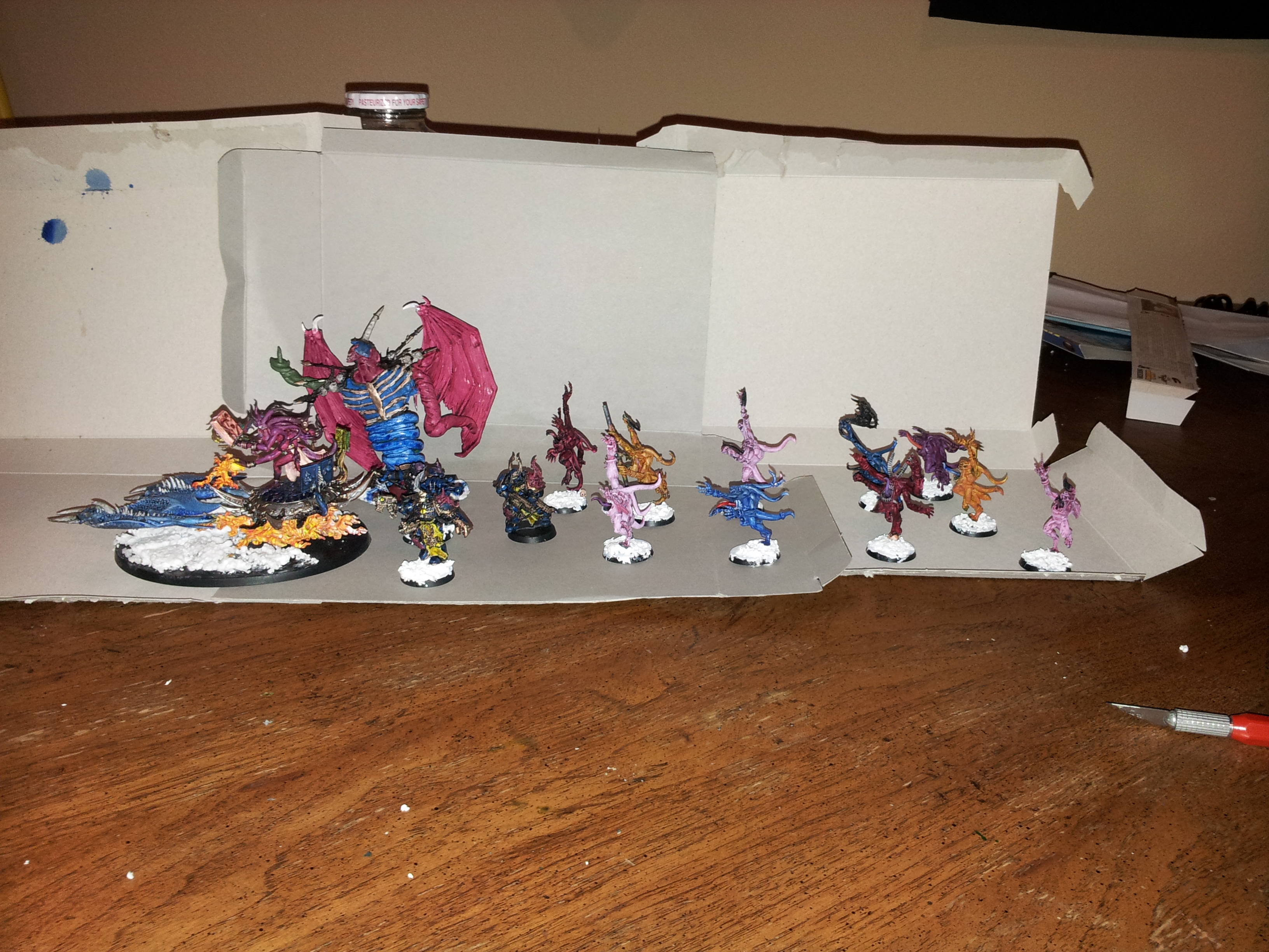 Working on the tzeentch parts of my chaos forces here is were i am at so far