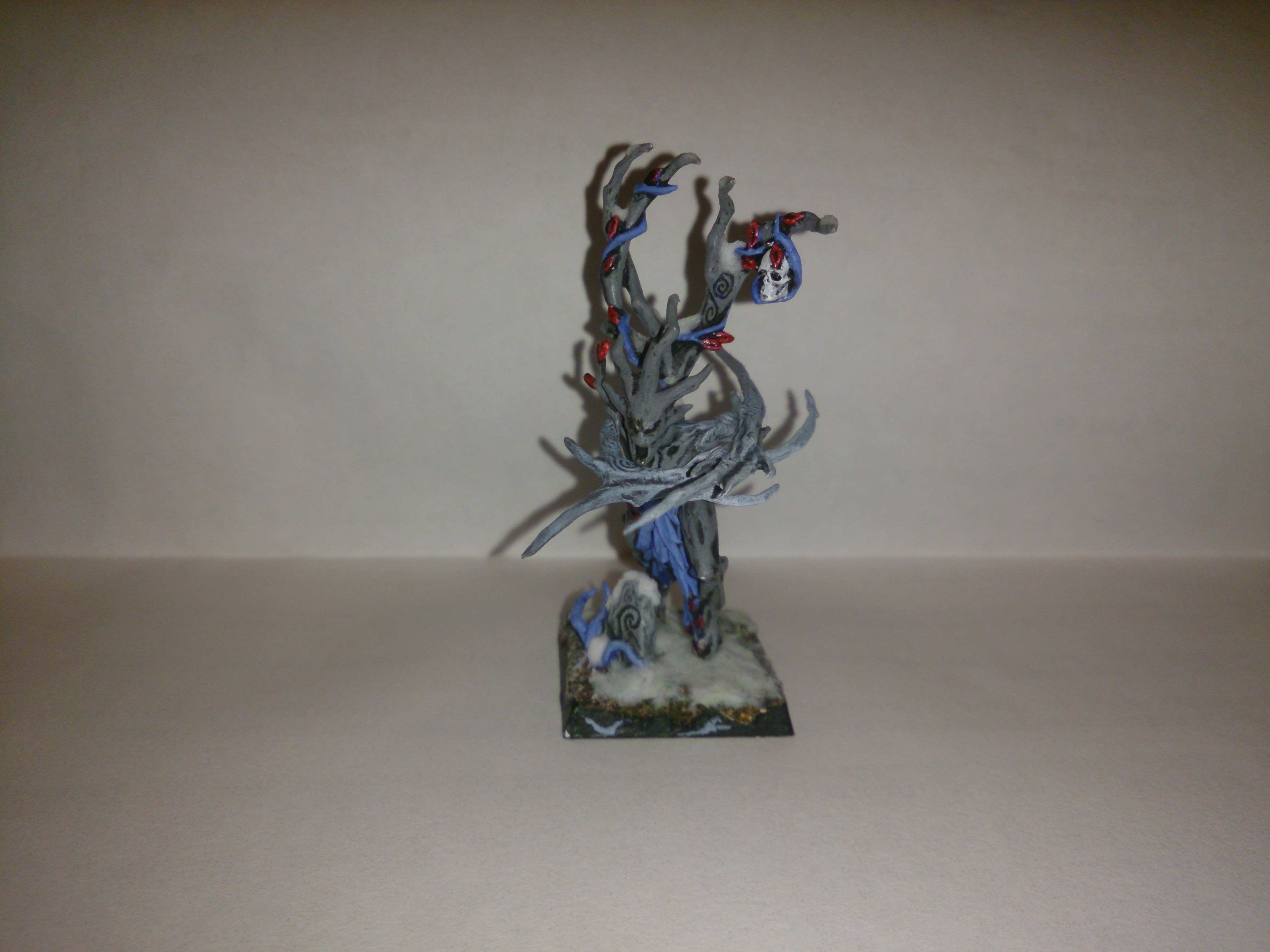 The blue was to give the model a more magical look, and also added some needed cold to a model that would otherwise have just been a grey tree person on a snow base.