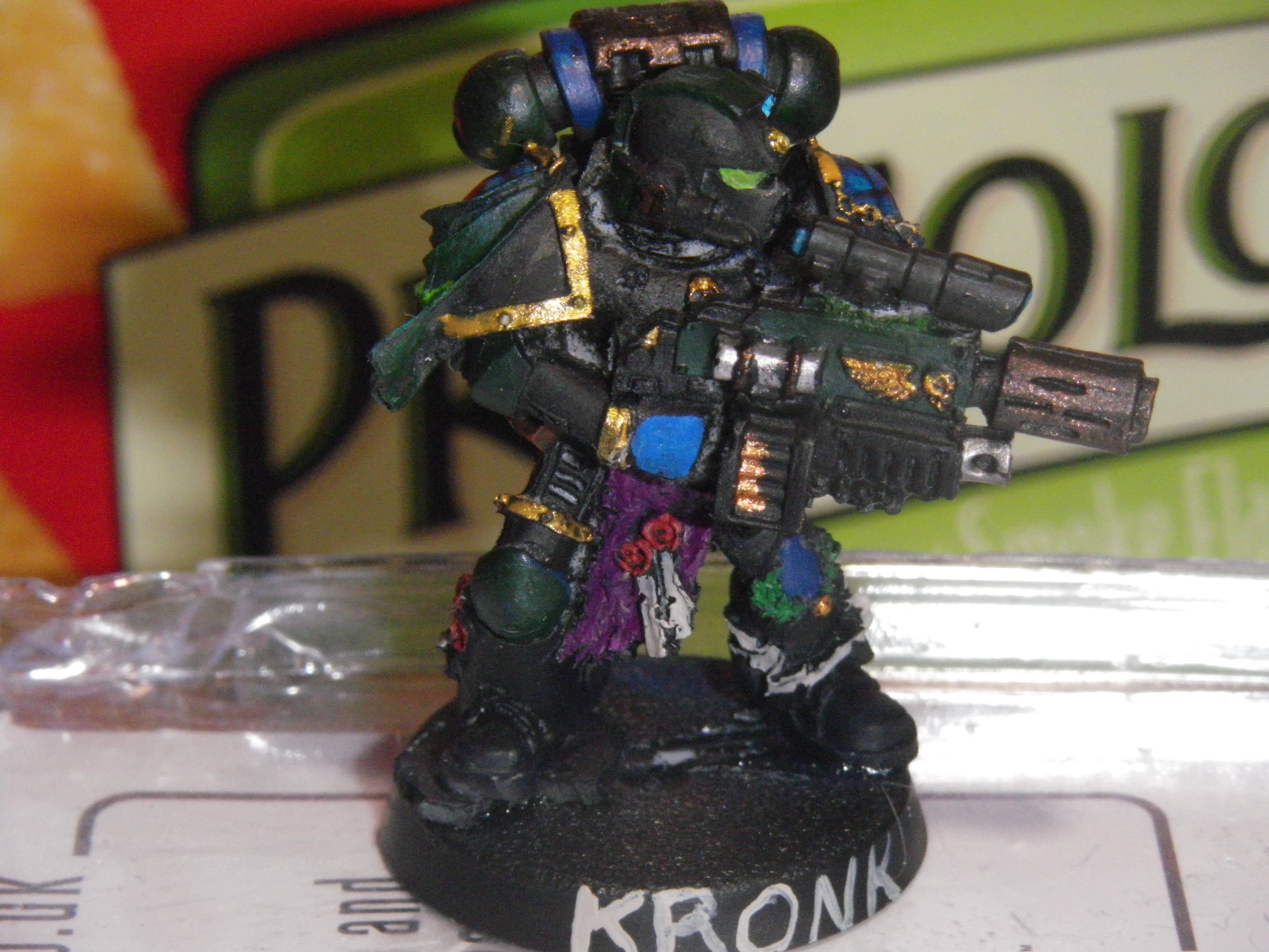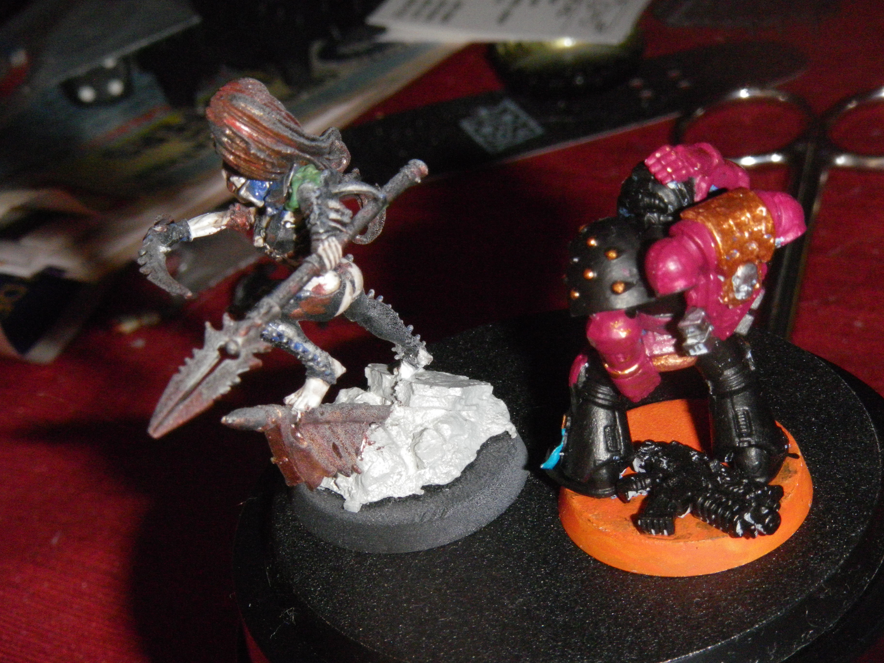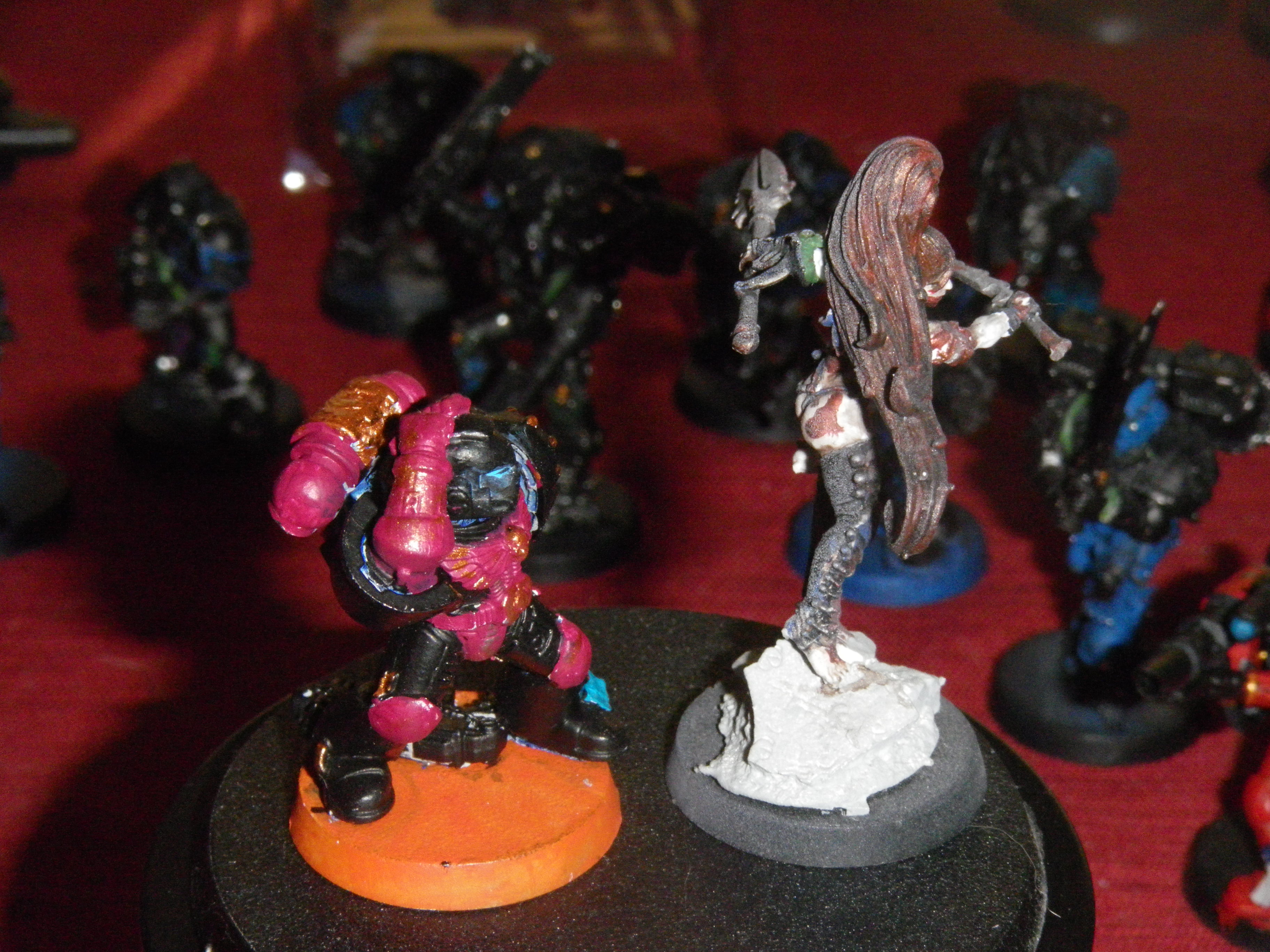 The fight was coming to a close as all can see the Wych was failing in strength and coming down off her combat drugs. Sargeant Kronk...well on his way to be nominated to compete for a Bloodname in a trial soon to held on this planet of little importance. The Dark Eldar Wych had eyes on her next two assailent from the Vanguard Squad and also keeping eyes out for weapon fire in her direction. She did not notice Kronk behind her. As everyone was getting ready to chant "KRONK KRONK KRONK" as he tok the victory shot sealing Lelith Hexperix dark demented soul into the Abyss......his damn alter ego came out and tries to seduce her into being his Bondwoman......