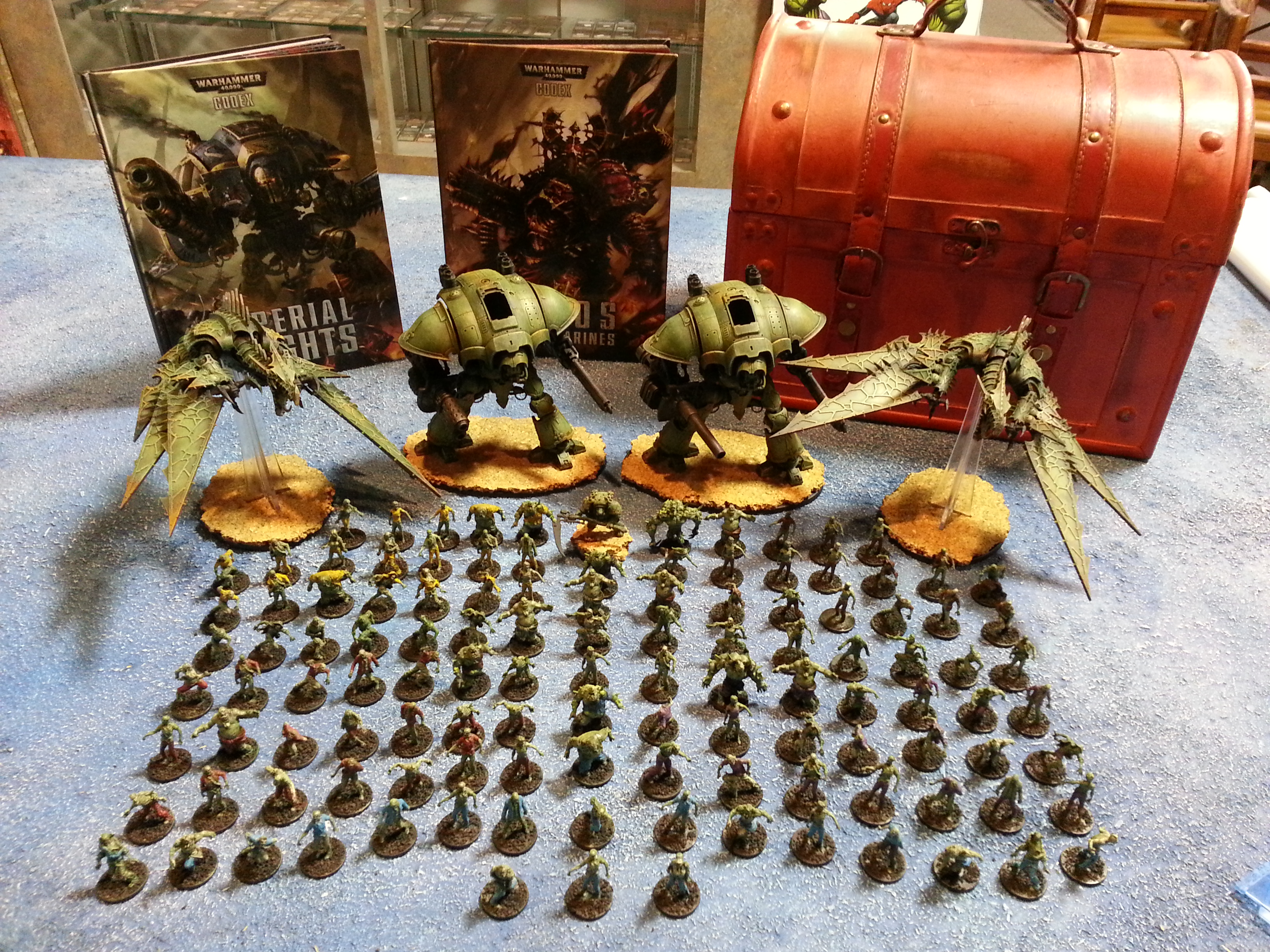 US but can ship. Will split up as follows: Typhus and Zombies, Heldrakes, and Knights. Freshly painted and played at ATC this past weekend. 1850 pts. 7th edition legal. Alot of fun to play.