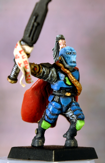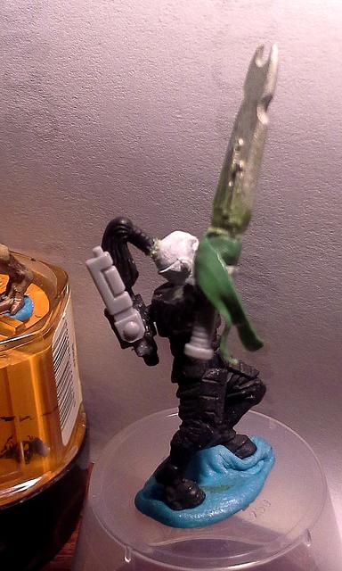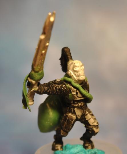 I hadn't used green stuff much, except for gap filling. I had some gaps to fill, or at least cover, with the blade/hilt joining. I got inspired by the flowing cloth...thingies...on the converted Ethereals over