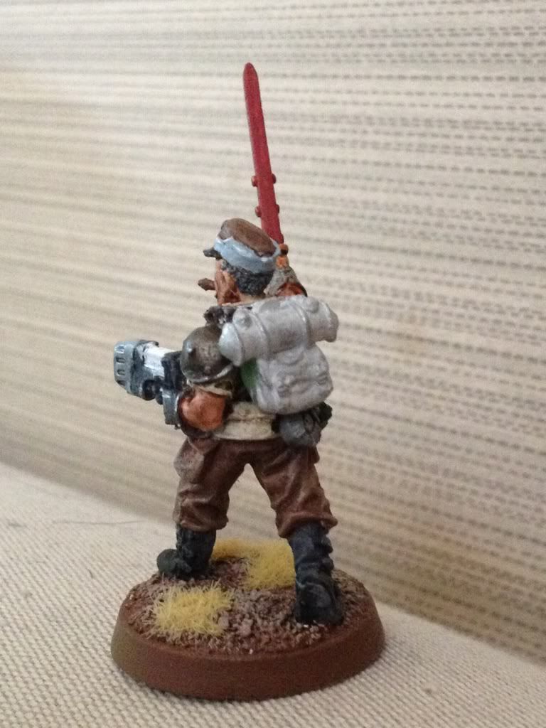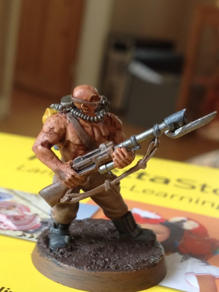 Here's my first test figure. A necromunder ganger, not sure which gang. Already had a gas mask so I thought no conversion was necessary.