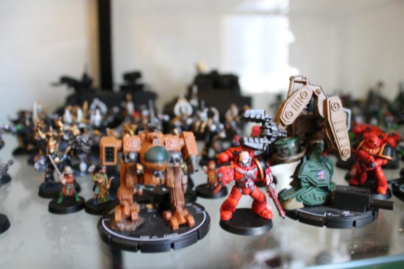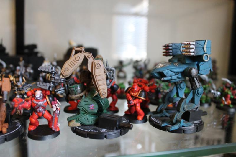 I snapped a couple pics for you. The tallest mech is that blue one, they range from that size down to just a bit taller than a space marine.