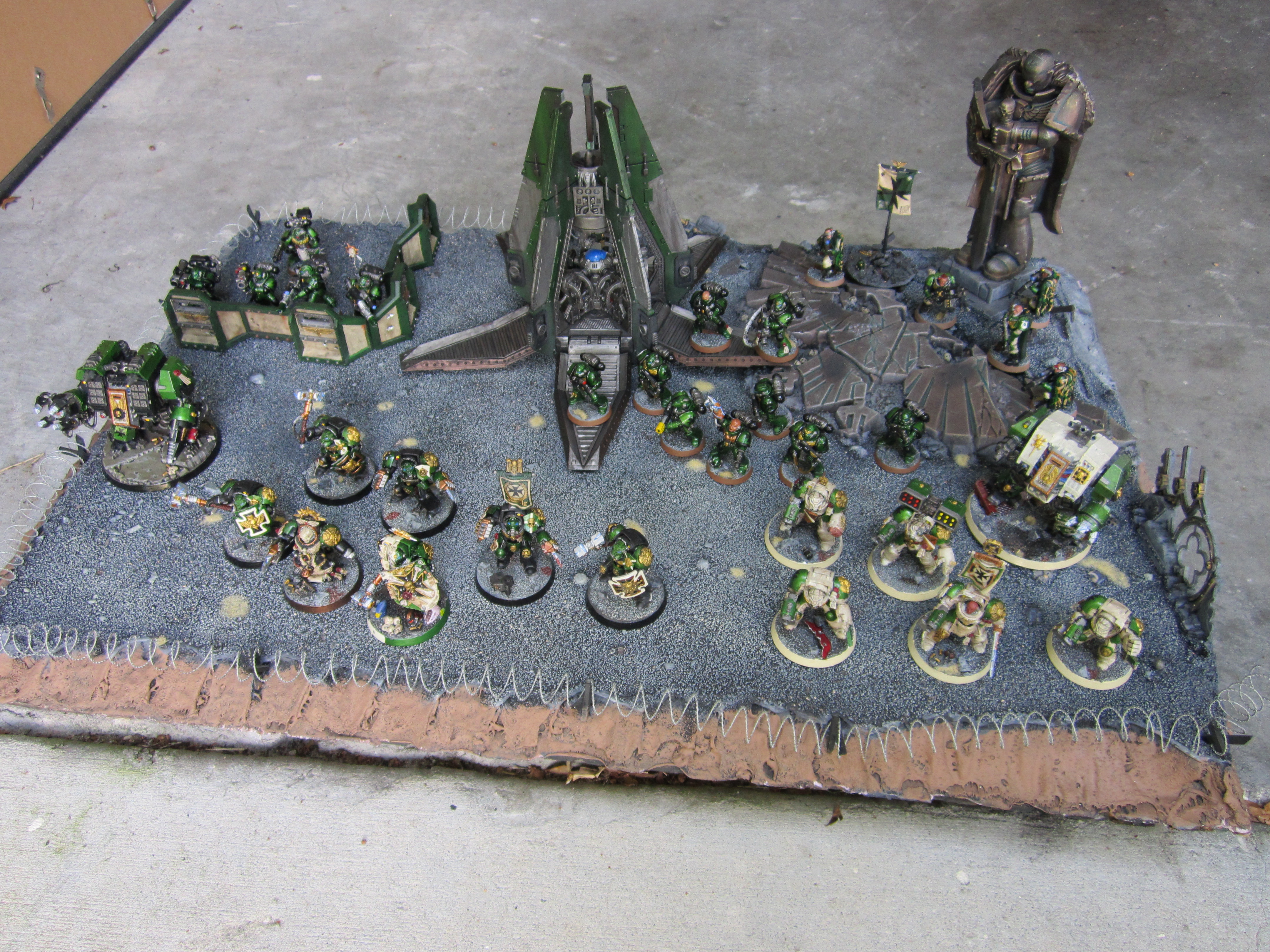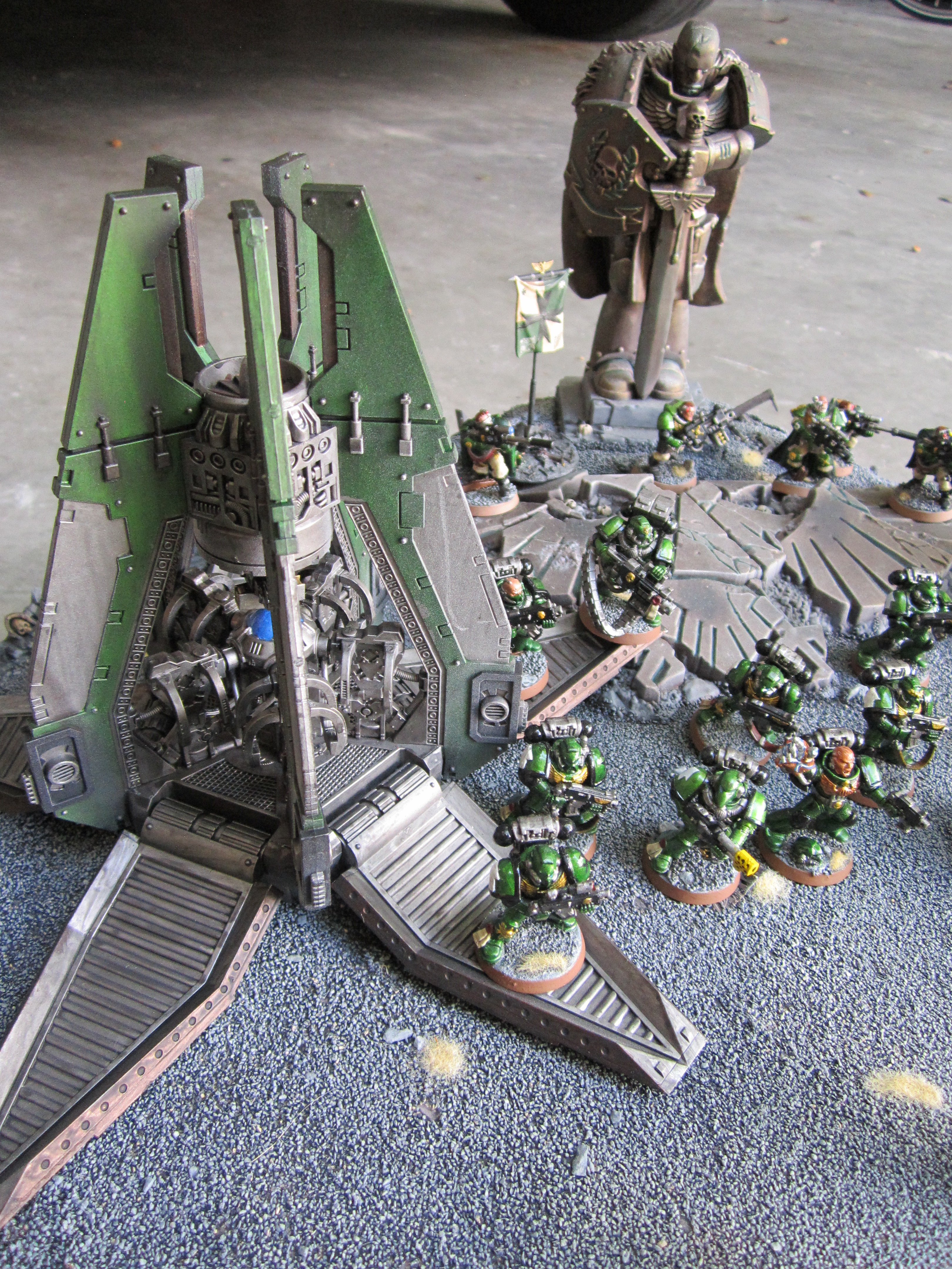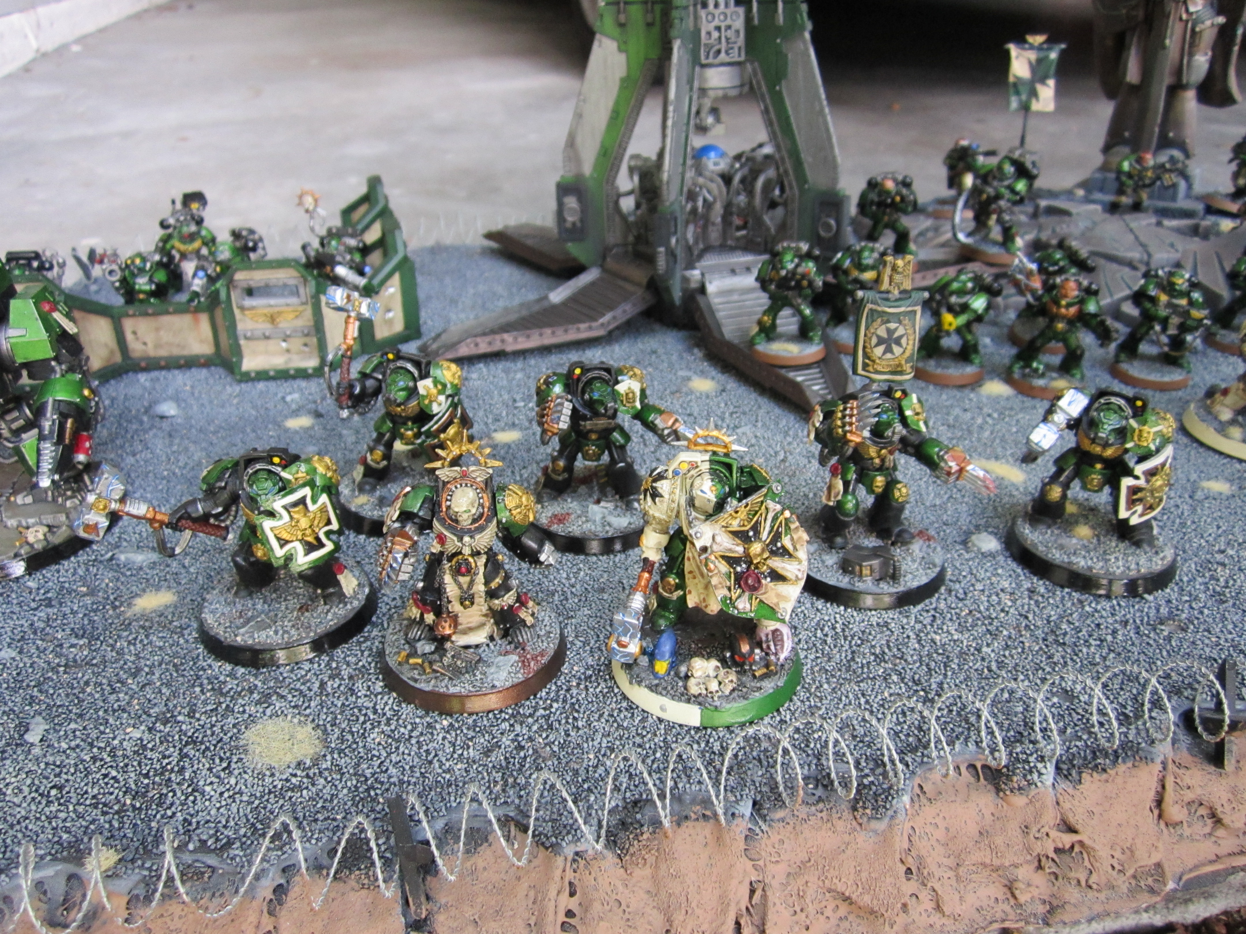 This is my attempt at my own Chapter colors. I went for green and BT iconography; sort of "hidden BT descendant chapter" kinda idea. I tend to jump between codexes ( SMs, BTs, and DAs).